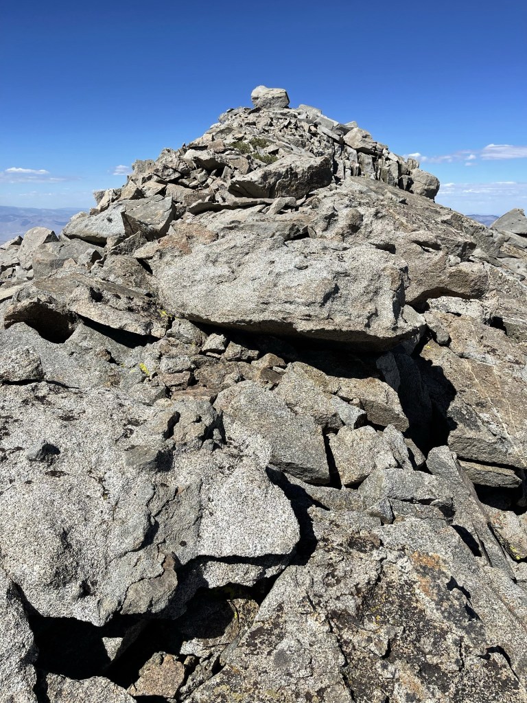 From there it was an easy scramble to the top (nothing above class 2). I reached the summit at 3:59pm at 7 miles!