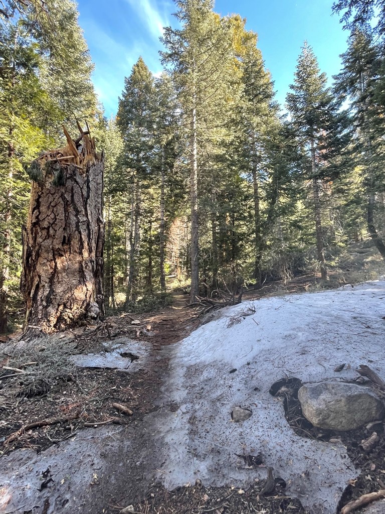 I proceeded east past the camp. There was more and more snow on the trail as I climbed higher.