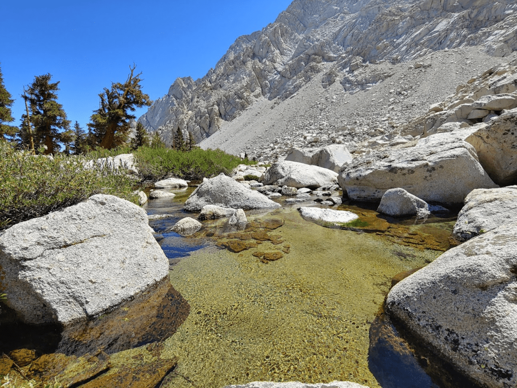 I had some time to kill so I took my shoes off, rolled up my pants, and went in up to my knees. The cold water felt very nice on my tired legs. I also filtered some water for drinking. I had plenty of water with me for the remaining 5 miles, but I had recently bought a new filter and wanted to test it out. The next day’s hike was going to be over 20 miles, so I was planning to use it then to avoid needing to carry 4-5 liters of water.