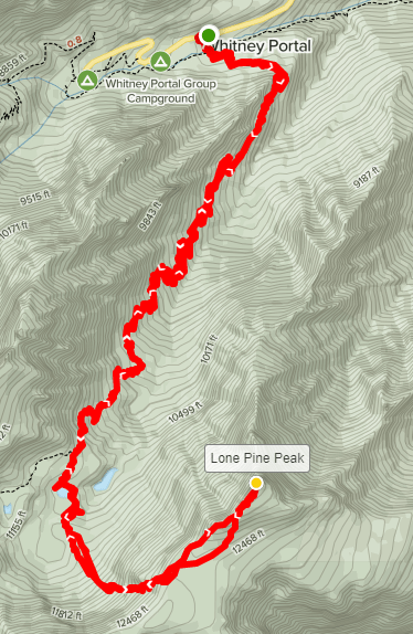 I thought about how awesome this view must be during the winter when the mountains are covered in snow. I also had a great perspective of the peak I intended to climb the next day, Lone Pine Peak. At just under 13,000 feet, Lone Pine Peak is 1500 feet lower than Whitney, but it is often mistaken for Whitney due to Whitney being several miles behind it. Lone Pine Peak is actually one of the most visually prominent peaks I had ever seen.