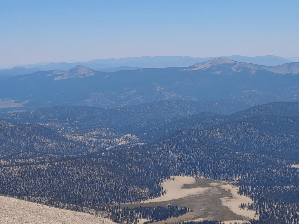 To the south I could see many of the peaks I climbed in spring. Pictured below are Kern Peak (right) and Smith Mountain (left).