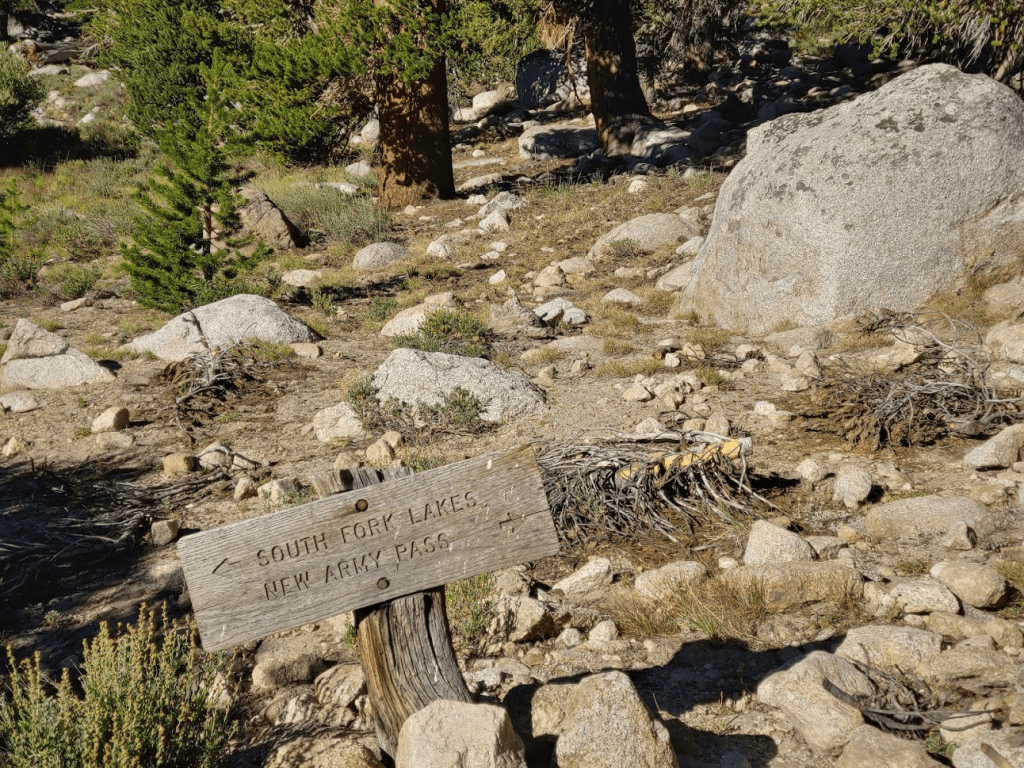 At 8.88 miles I reached New Army Pass at 12,304 feet. The trail crosses into Sequoia National Park here. I got my first good look at Mount Langley a few miles north.