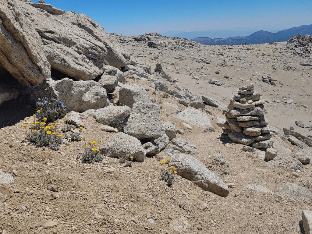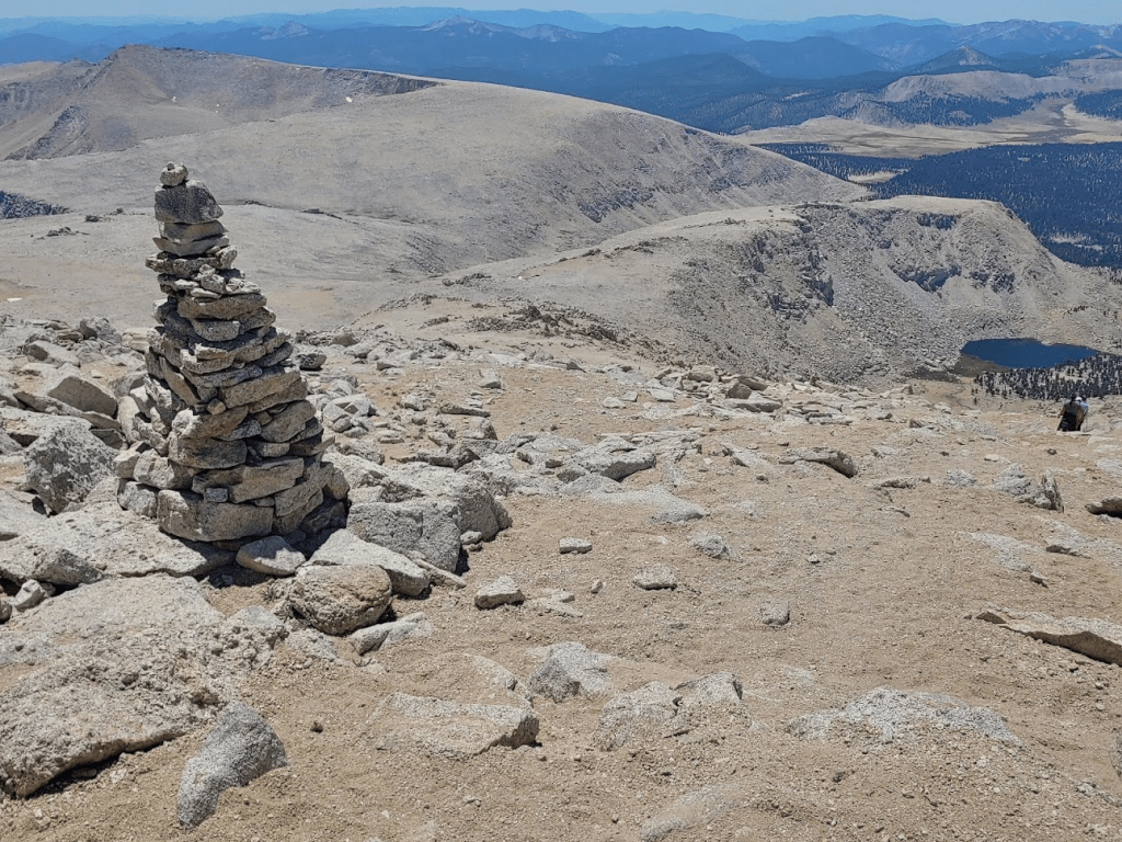 The trail started to feel somewhat crowded at this point, but it was nothing compared to Mount Whitney. I noticed a lady laying down off to the side of the trail at one point. I asked if she was okay or if she needed water. She said she was fine, but it sounded like she had already turned around because the altitude was getting to her. I wasn’t too worried about her – she was speaking coherently plus there were dozens of people around if she got into real trouble. At 10.74 miles I passed a sign asking people not to touch the cairns ahead.