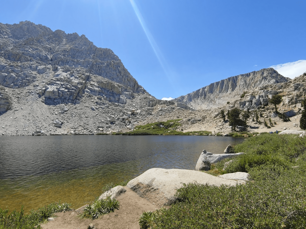 Cirque Peak came into view just above the 2nd lake. Trailmaster Peak and Peak 12,525 were also visible. Cirque Peak is sometimes combined with Mount Langley for a very strenuous day hike. I had briefly considered attempting that, but ultimately decided it would be much more enjoyable split into 2 days.
