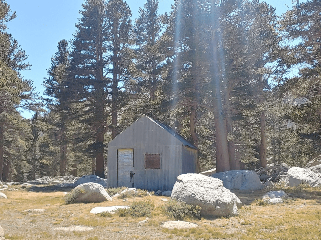 My plan for Sunday was to climb 12,944 foot Lone Pine Peak. I intended to take the Meysan Lakes Trail for about 4.5 miles/3000 feet and then climb the remaining 2 miles/2000 feet from there. I wanted to get an early start since I had to drive home afterwards, so I got up at 4:15am. I had about a 20 minute drive from the Alabama Hills up to the Whitney Portal Campground. There is designated parking for the Meysan Lakes Trail off to the side of the road near the campground. I wished I had driven up here the night before to sleep since it would have been much cooler at 8000 feet instead of 5000. I had read that camping is not allowed at the trailhead, but no one would have noticed or cared if I had slept in my car (this is another popular trail for backpackers so there were many cars parked there overnight). Oh well, lesson learned. I started hiking at 5:27am from 8043 feet. I had to walk through the campground to reach the trail. I went by some summer homes before reaching the trailhead at 0.3 mile (I had no idea there were summer homes up here).