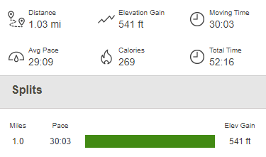 I hung out for a bit on the summit soaking in the views. I returned the way I came and reached the car at 7:43pm. This hike was 1.03 miles, 541 feet elevation gain, and 52:16 total time.