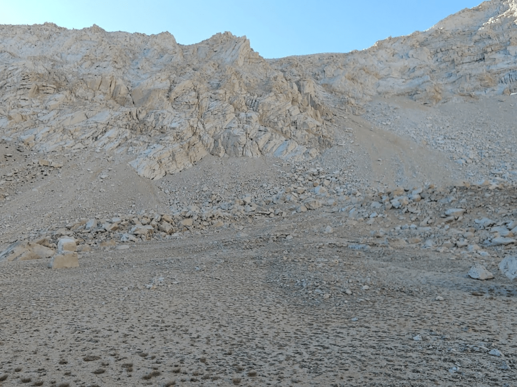 From here, it was straight up. The sandy chute on the right-center of the picture below was my ascent route.