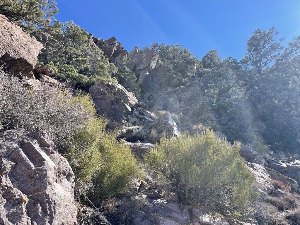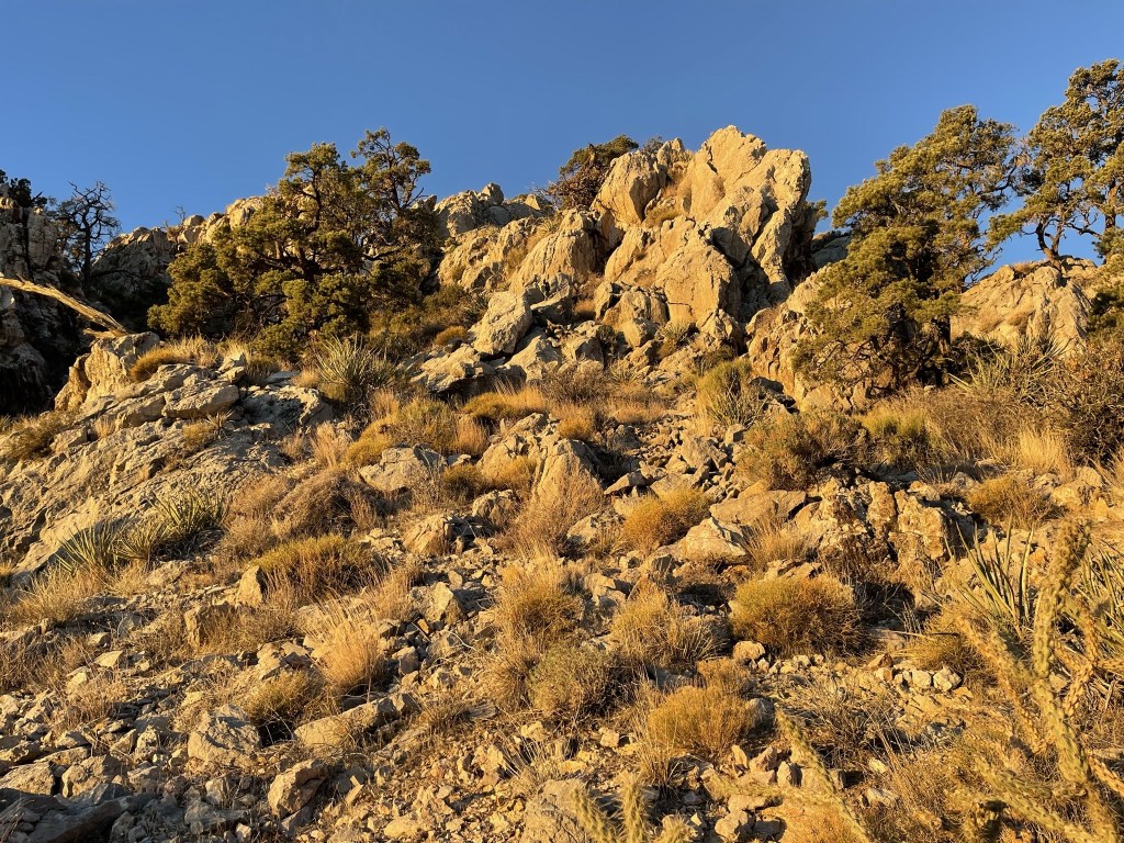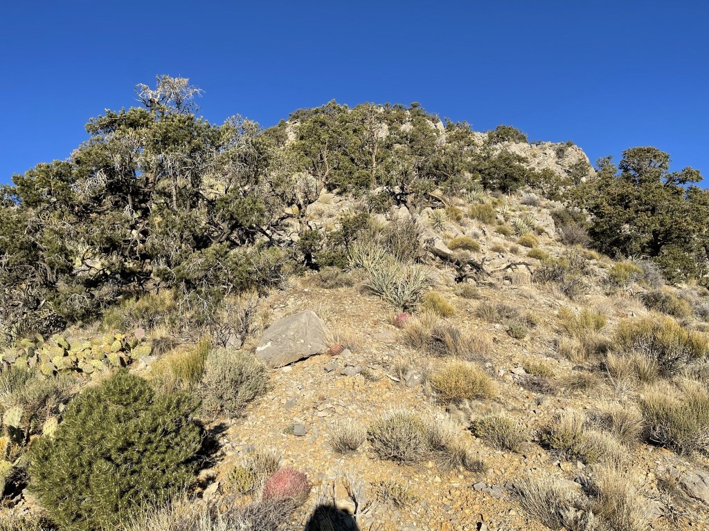 As I climbed higher, I decided this was some of the most difficult terrain I had ever been on. So much of the rock was steep and crumbly. There was also an abundance of sharp, pointy plants, primarily prickly pear and agave. Previous reports had actually led me to believe that the cactus density was going to be worse than it was. I was expecting to essentially be bushwacking through cactus, but it was nowhere near as bad as I feared.