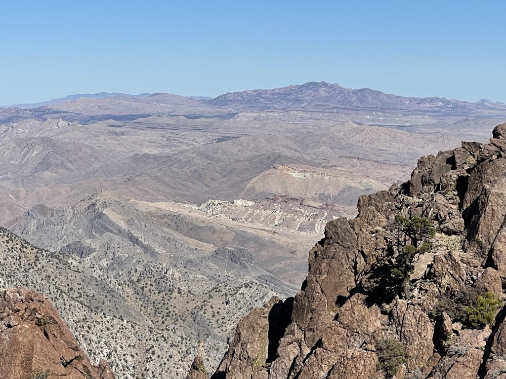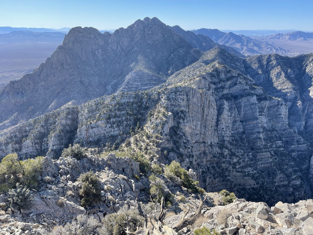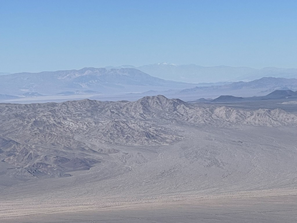 To the north I could see Mitchell Point. Clark Mountain is behind Mitchell with snow-capped Mount Charleston poking out behind Clark.