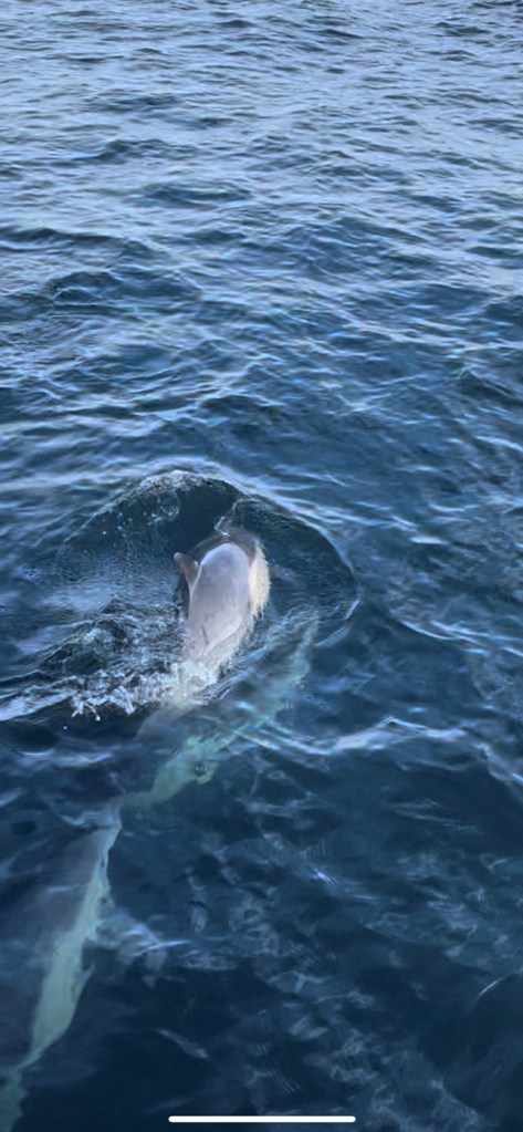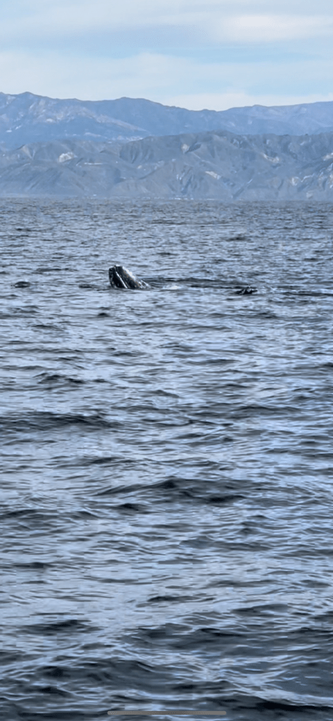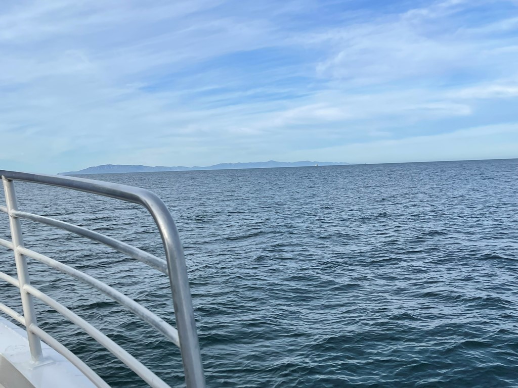 About halfway to the island, we were lucky enough to spot a gray whale, as well as a few hundred dolphins! The boat followed the whale for about 15 minutes which was pretty cool. We saw it surface a few times to breathe. After a while the whale became more comfortable with the boat’s presence, and we saw it lay on its back and poke its head above water a couple times. It appeared to be playing with the dolphins which was an amazing sight.