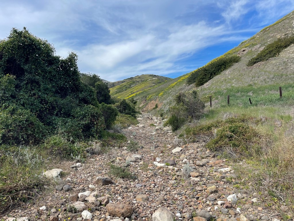 We crossed a dry creek. The day was beginning to warm up in the sun.
