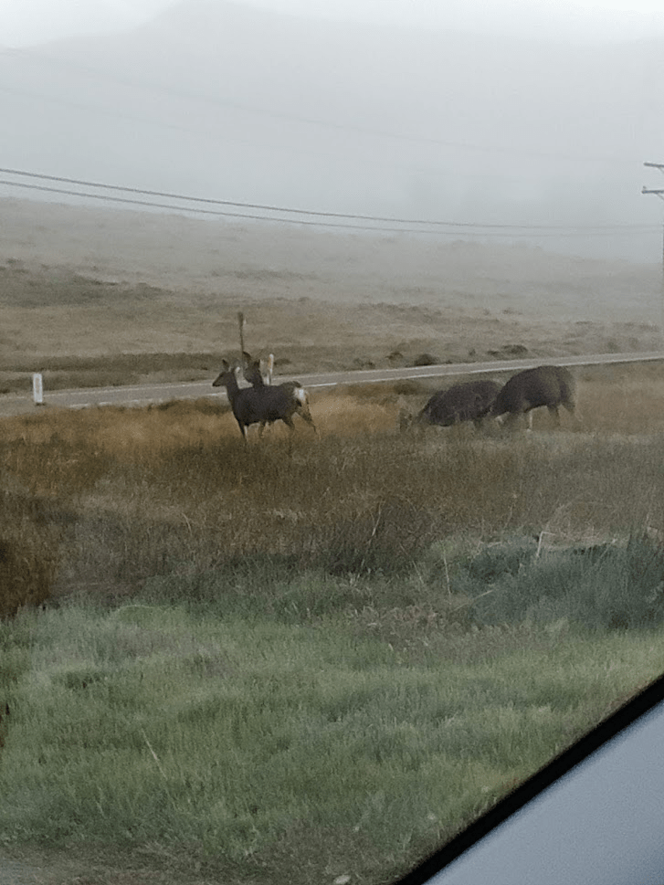 For the 2nd Sunday in a row, I decided to do some hiking in a remote desert range in Imperial County. It was getting near the end of April so I knew the weather would soon be too hot for desert hiking. I had more peaks I wanted to in Anza Borrego, but all California state parks were still closed due to the COVID-19 pandemic. Similar to last week, I opted instead to climb some peaks in Imperial County east of Anza Borrego. Last week, I had climbed Carrizo Mountain, the high point of the Coyote Mountains. This week, I decided to climb the High Point of the Fish Creek Mountains (2371 feet), which are adjacent to the Split Mountain area in Anza Borrego. I also intended to climb Fish Benchmark (2334 feet), which was near the high point, for a nice loop hike of about 8 miles. As had become my usual routine, I woke up at 4:30am and hit the road at 5. It’s a pretty long drive to the Fish Creek Mountains, which aren’t far from the Salton Sea. I saw a large group of deer while driving north on Highway 79 just before Lake Cuyamaca. I counted at least 12 of them, but there may have been even more.