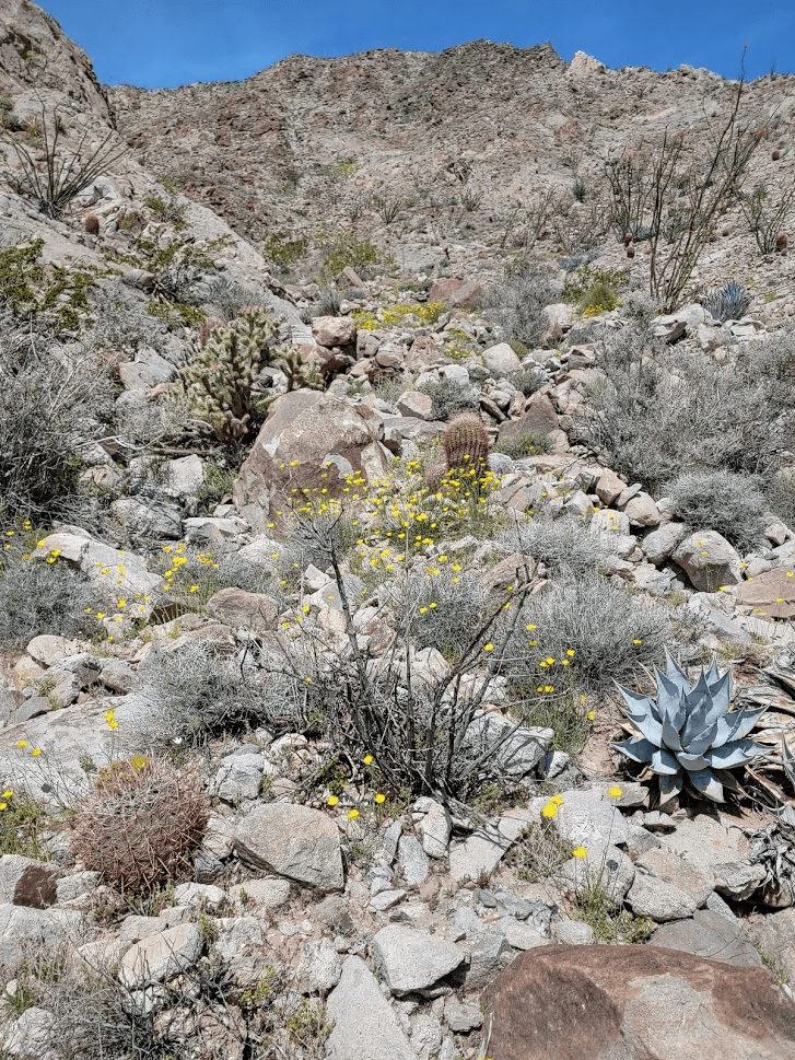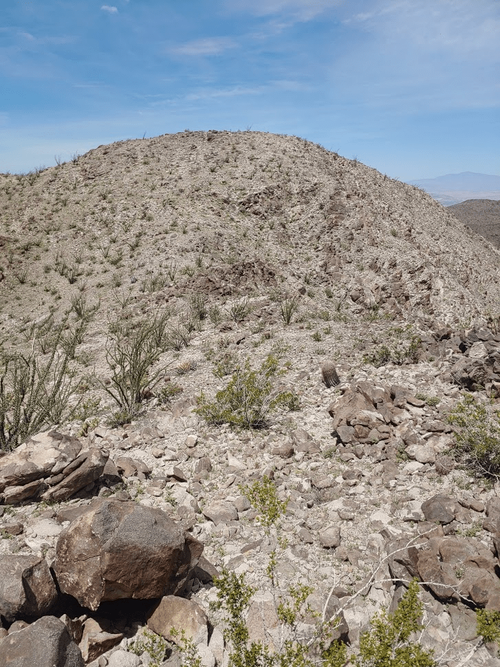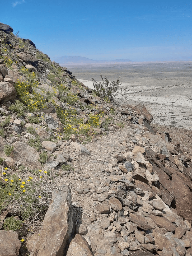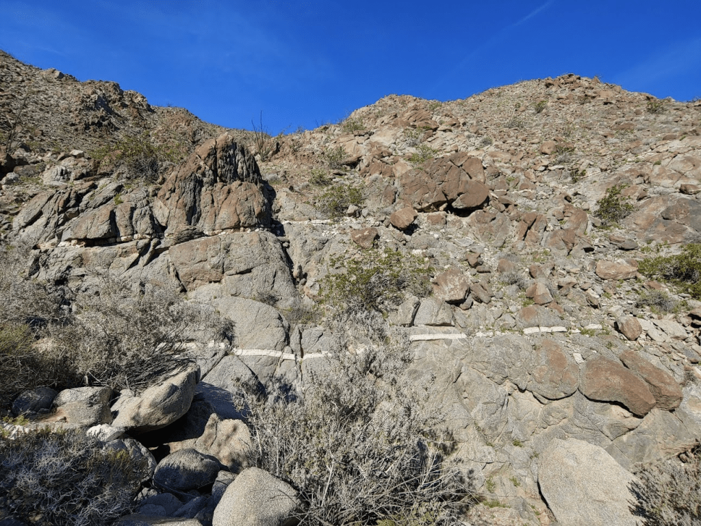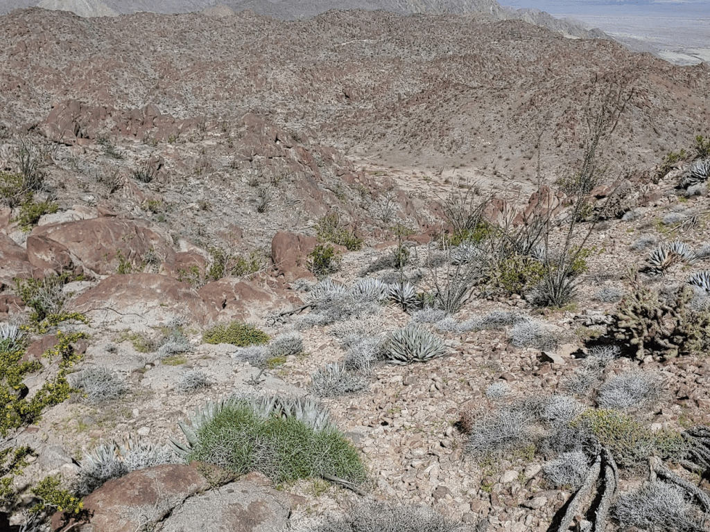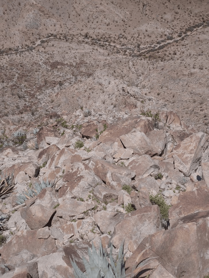 At this point I found a trail which led back down to the desert floor. This is likely an old miner’s trail. Most people climbing Fish Creek Mountains High Point use this trail as the main route up and down.
