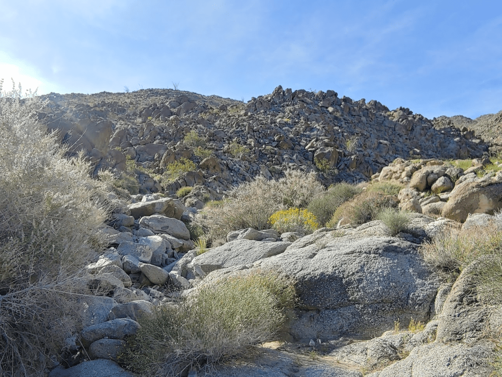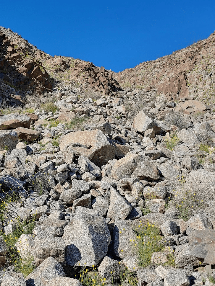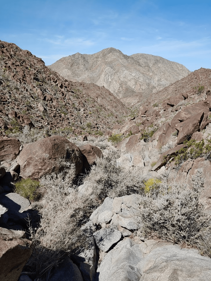 The alluvial fan led into a canyon that I would ascend up to Fish BM. The canyon was very rocky which made for some fun scrambling.
