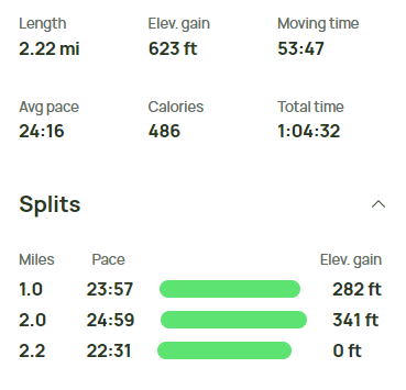 I reached the summit at 2:40pm at 1.6 miles. The wind was crazy, so I didn’t stay long. I then hiked back to the car, which I reached at 3:03pm. Stats for this hike were 2.22 miles, 623 feet elevation gain, and 1:04:32 total time.
