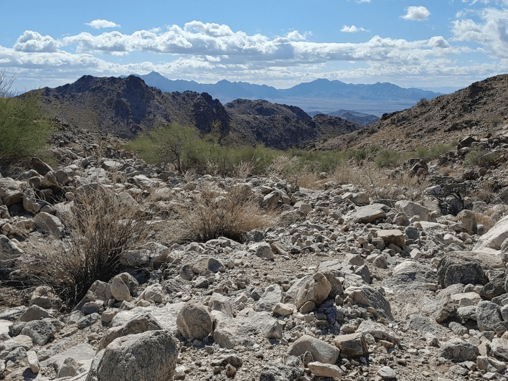 I started hiking up a wash north towards the mountains until I realized I needed to be more west. I hiked over to the next wash and the same thing happened. This process repeated itself 2-3 times until I finally realized I needed to go around the south side of this small hill before continuing north. Climbing in and out of washes was getting really tiring.