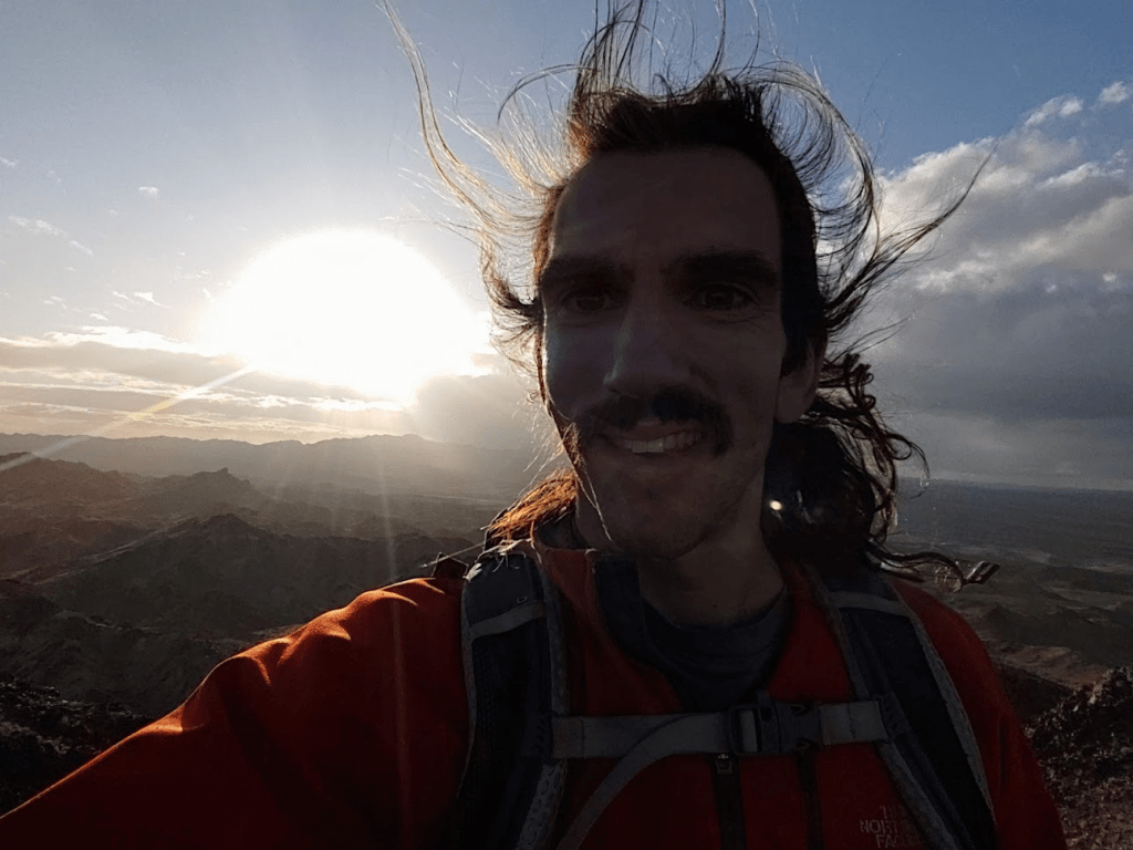 While I was enjoying the summit, I happened to see 2 or 3 big horn sheep! I spotted them in the bowl I had just hiked through below the summit. They were running, so they quickly disappeared behind a hill. I saw one of them emerge on the other side but then quickly ran off out of sight. I was very excited! It was my 3rd big horn sheep sighting in the wild. The first was while descending Pyramid Peak in Death Valley in February 2019, and the second was on Silver Peak in Mojave National Preserve in December 2019. Seeing these big horn sheep made me positive that what I had seen this morning on Granite was NOT a big horn. The horns make it very obvious, even from a distance. I stayed still for a few minutes hoping I would catch another glimpse, but no luck. With daylight fading, I began descending at 3:47pm.