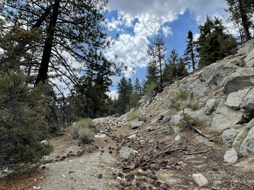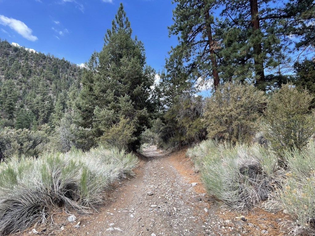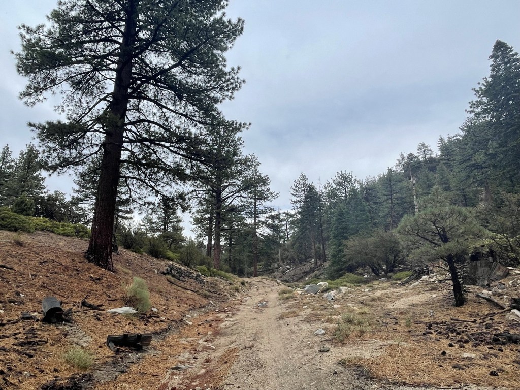 I had originally been planning a 3 day trip to the Sierra for this weekend, but a high chance of thunderstorms on Friday and Saturday caused me to change my plans. I decided to instead spend a short 2 day trip in the San Bernardino Mountains to climb some more HPS peaks in the area. I left San Diego at 7am on Saturday and made the 2.5 hour drive to the mountains. First up for the day was 8332 foot Heart Bar Peak, which lies just south of Highway 38 on the way to Big Bear Lake. From the highway, I drove a few miles past the turnoff for Heart Bar Campground, turned right onto a rough jeep trail, and then parked immediately. I began hiking on the jeep road at 9:56am from 7290 feet above sea level.