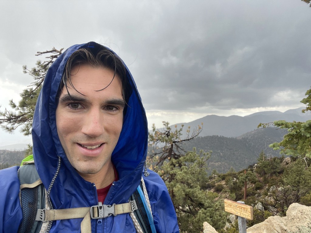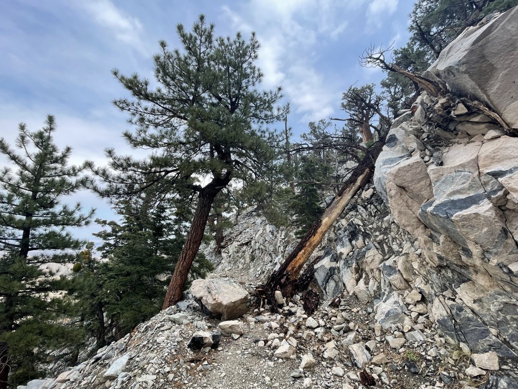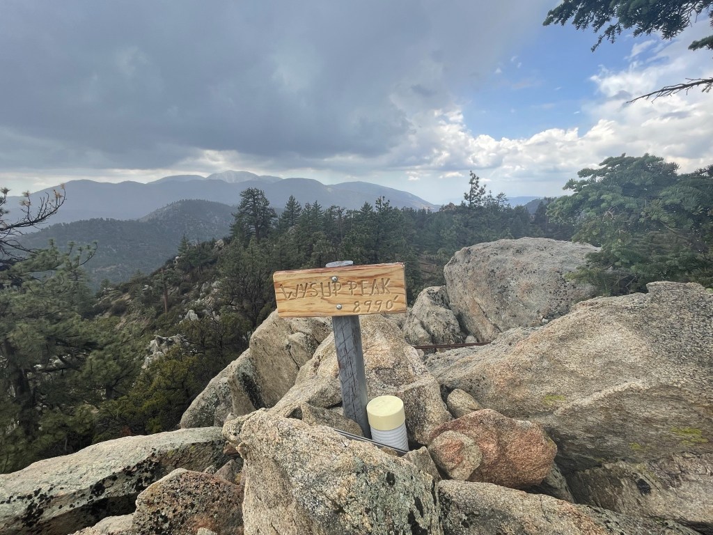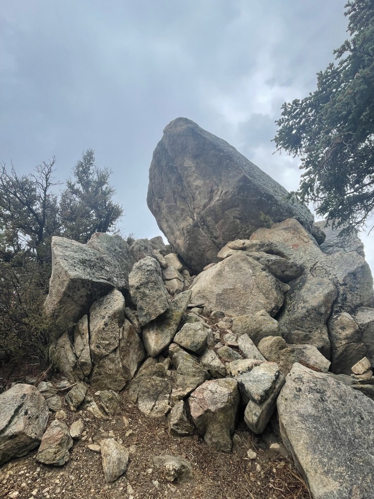 I reached the top at 4:08pm at 7.3 miles! While I was on the summit, I figured out that I was not actually standing on Three Sisters. I read some old trip reports and learned that the 3 peaks are located about a mile east, but the HPS summit was moved to this peak in 2001 due to private property concerns. I located a register can but unfortunately it was jammed shut so I was unable to sign it. It was still pretty cloudy which obscured the views somewhat. I could see San Jacinto to the south.