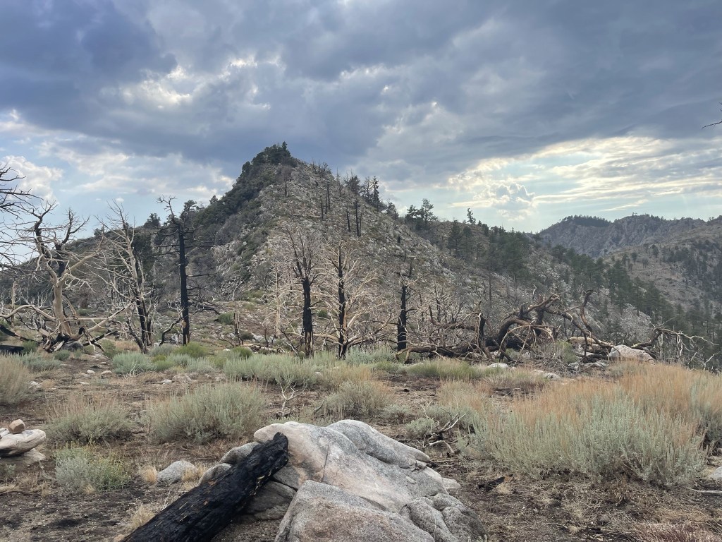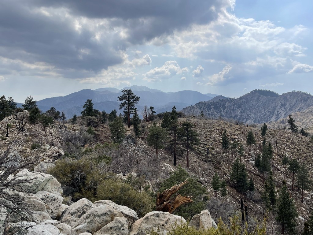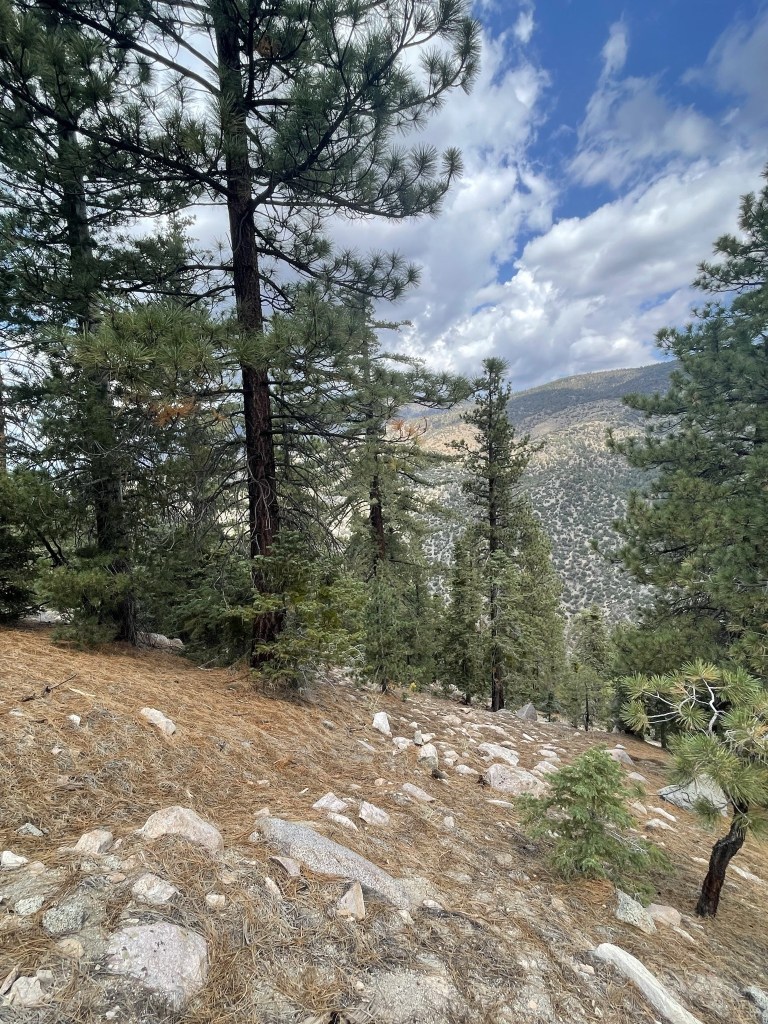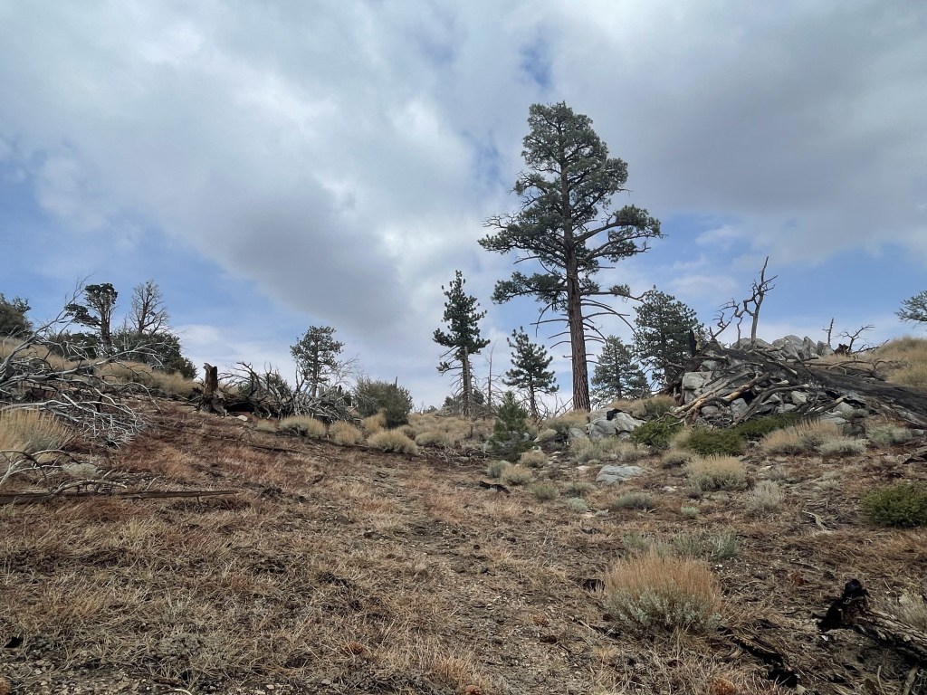 The trees started to thin out as I hiked east. The area appeared to have burned at some point in the recent past, plus I was moving towards the eastern edge of the mountain range which is a transition zone between mountains and desert.