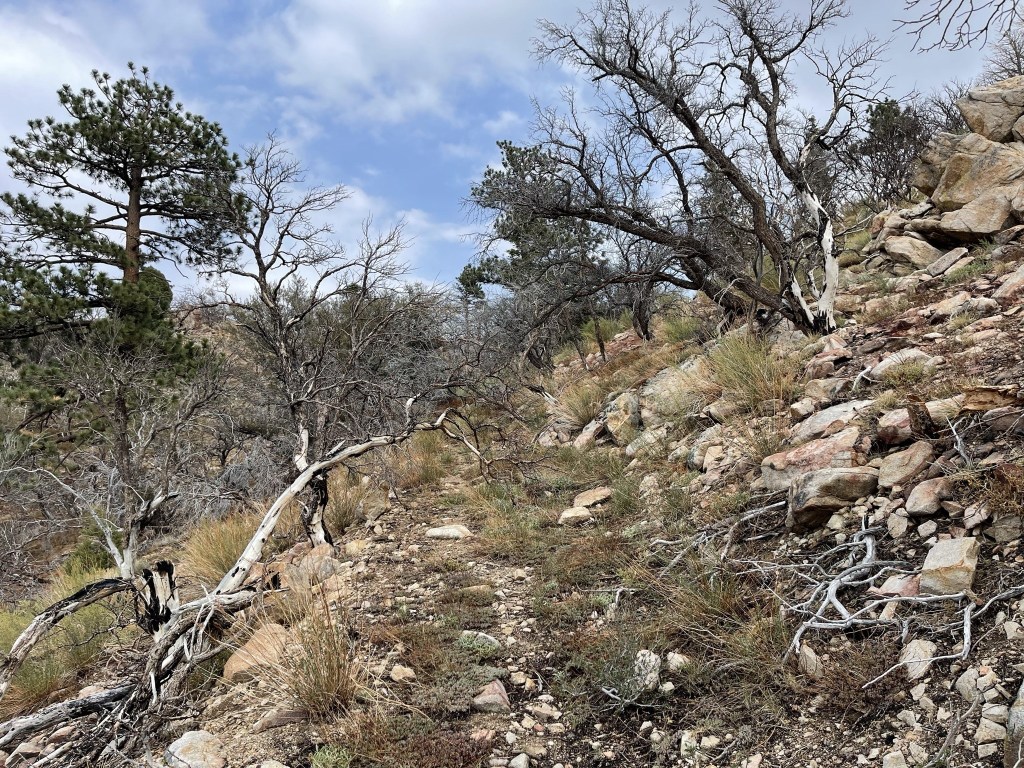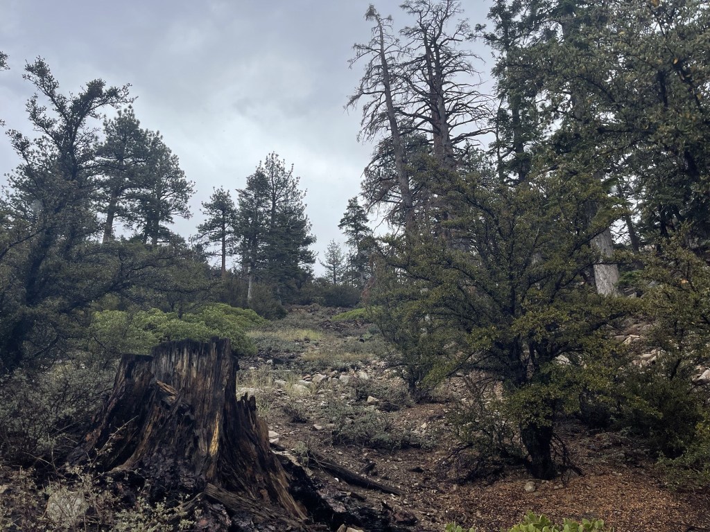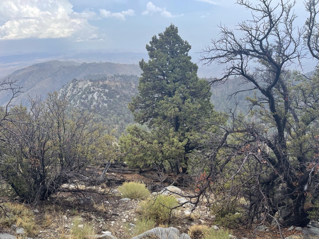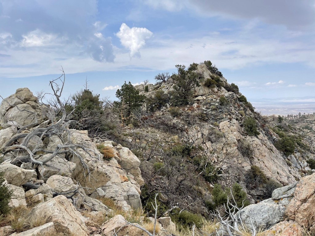 The trees started to thin out as I hiked east. The area appeared to have burned at some point in the recent past, plus I was moving towards the eastern edge of the mountain range which is a transition zone between mountains and desert.