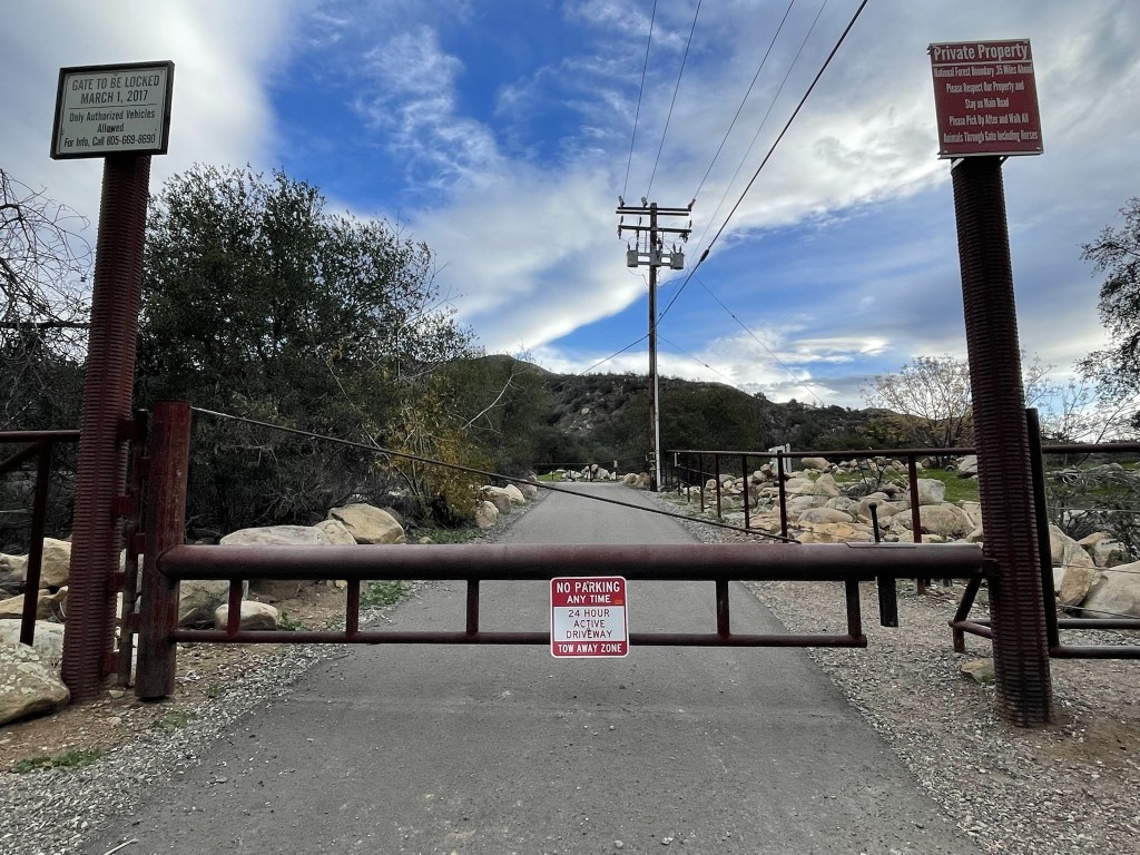 Hines Peak is a 6716 foot peak located in Ventura County. It is the highpoint of the Topatopa Mountains which are northeast of Ventura. With 3196 feet of prominence, it is the 37th most prominent peak in California. I planned to climb Hines Peak as well as Topatopa Bluff (6367 feet) from the Sisar Canyon Trailhead, which would involve a long hike on dirt roads and trails. I left San Diego early and made the 3 hour drive to the trailhead, which is located in a residential neighborhood on Sisar Road just off Highway 150. I began hiking at 8:02am from 1611 feet above sea level. I passed through a gate blocking vehicular traffic.