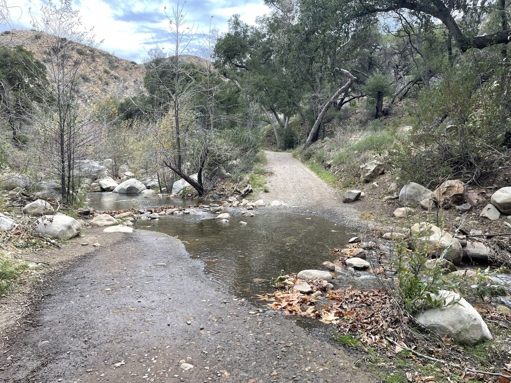 I entered Los Padres National Forest and then crossed Sisar Creek at 0.7 mile. I was able to stay dry by hopping across the rocks on the right side.