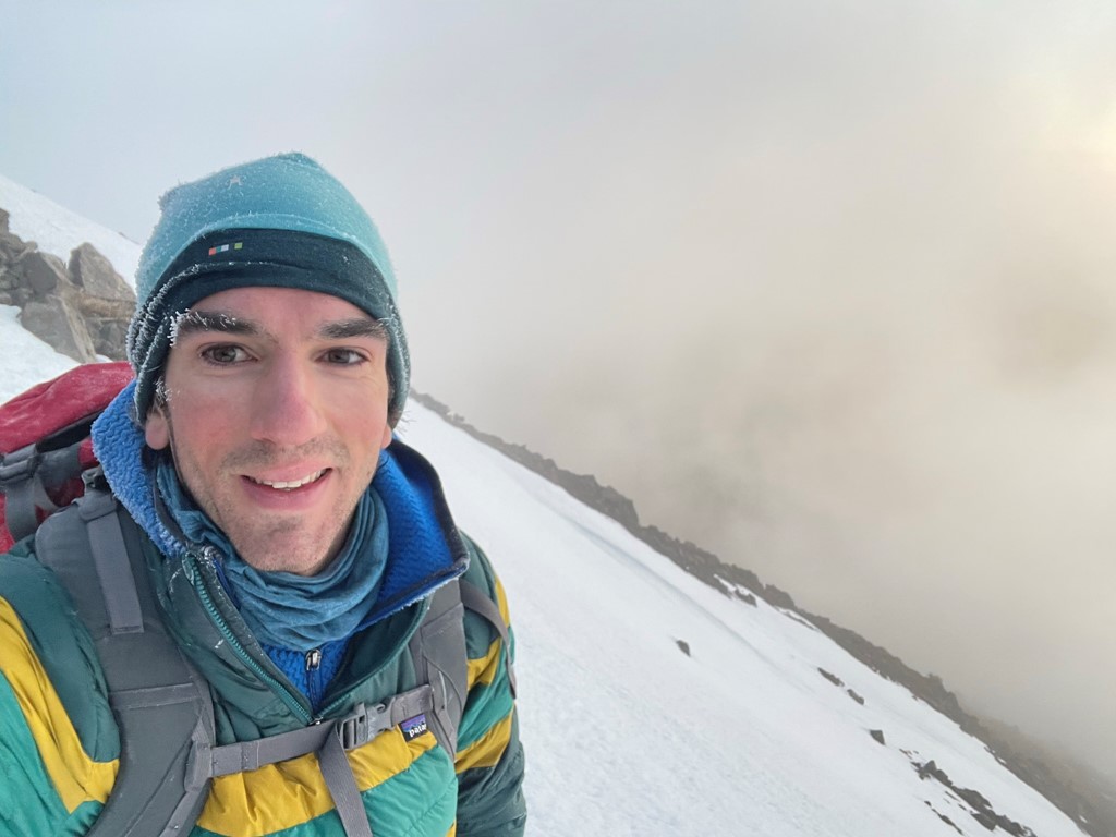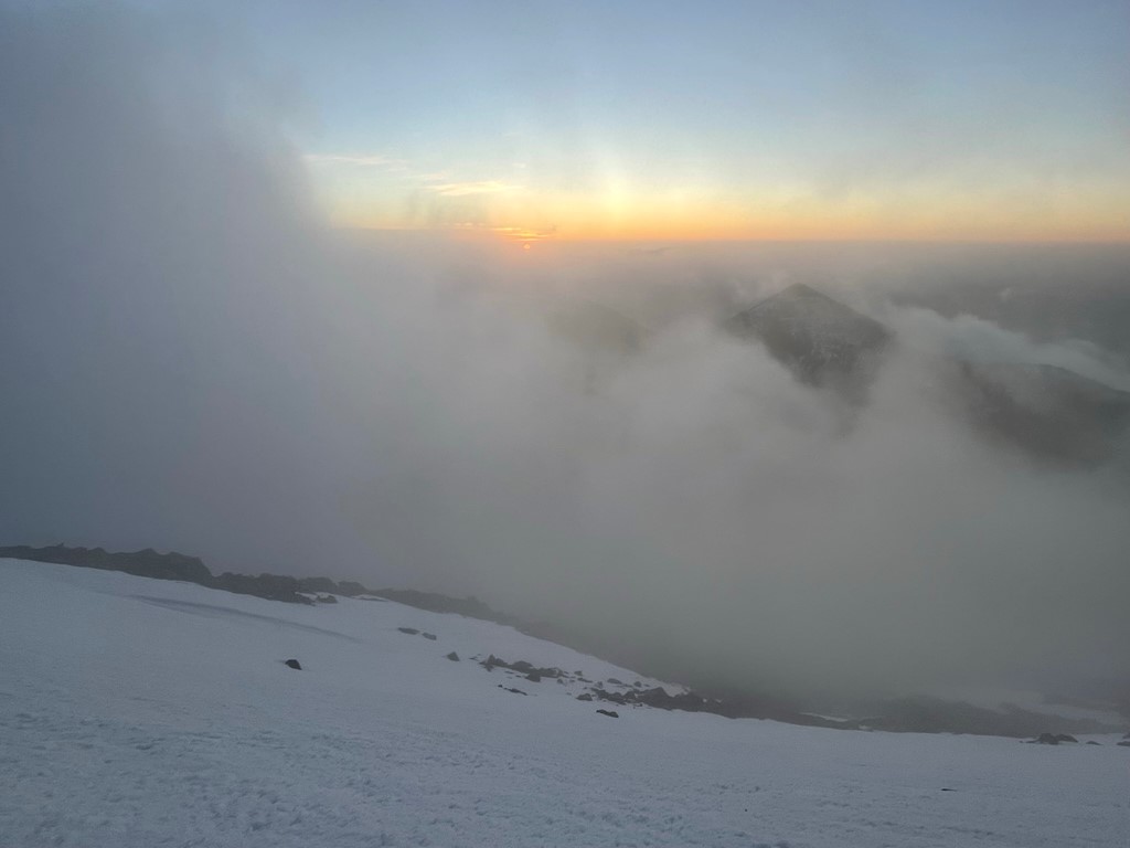 I tried to photograph the surrounding area as best I could in between the cloud layers. Doyle and Fremont can kind of be seen below, while Agassiz is hidden behind the clouds on the right.