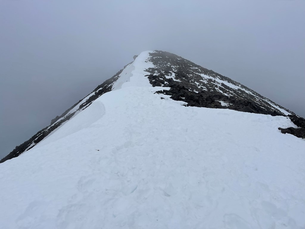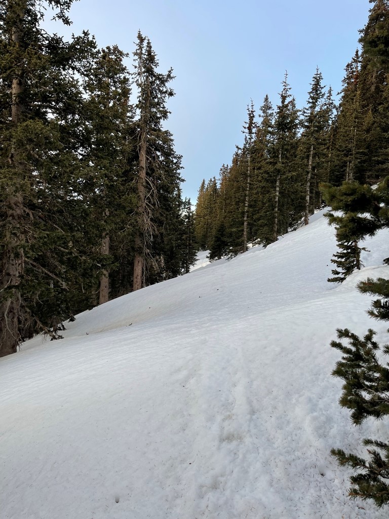 Soon the trail disappeared underneath a large snow-covered slope.