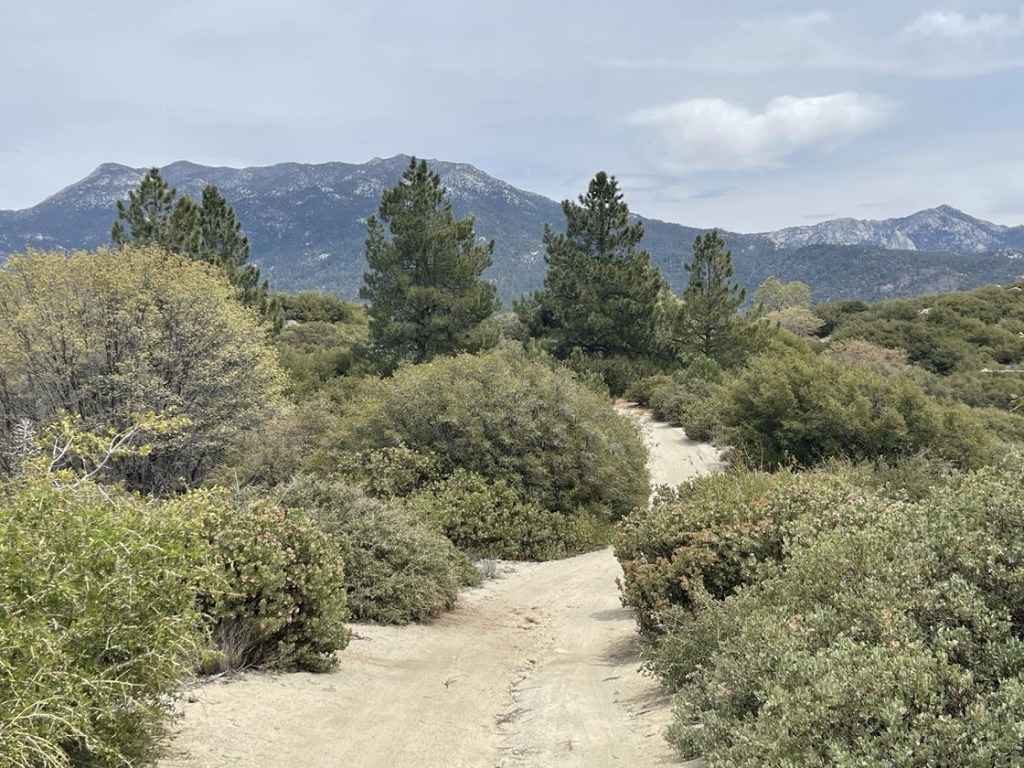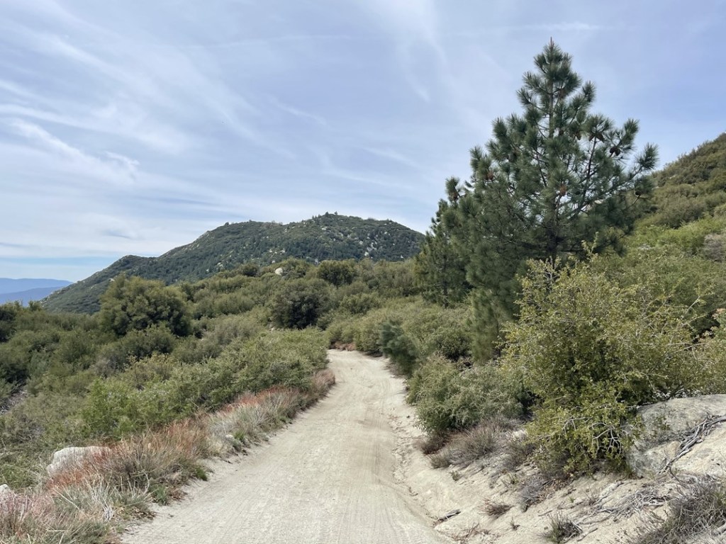 My plan for the first day of a quick 2 day road trip was to climb 3 HPS peaks in the northern part of the San Jacinto Mountains: Indian Mountain, Black Mountain, and Castle Rocks. I was planning on doing the Cactus to Clouds hike the following day, so I wanted to have an easier day with less mileage than usual. I left San Diego around 10am and made the 2 hour drive to the mountains. First up was 5790 foot Indian Mountain, which can be accessed via a forest road 3 miles from Highway 243. Some people drive to this peak, but the road is very rough so I opted for a 6 mile hike instead (not that I would do a drive-up anyway). I parked at the Indian Vista Overlook and began hiking at 12:02pm from 5425 feet. There was a small trail that connected the parking area with the road.