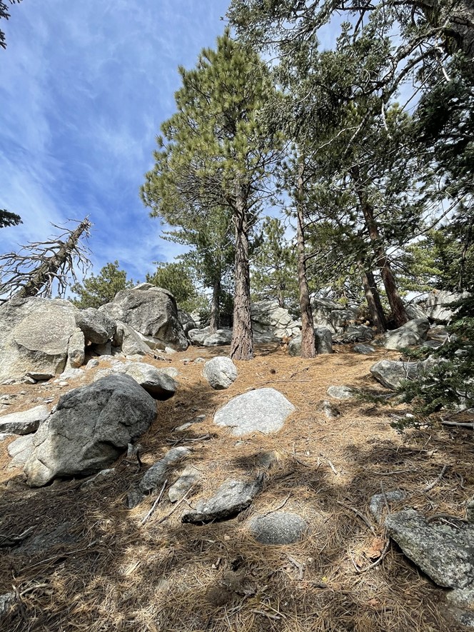 I did not find a register or any survey markers. The views weren’t as good as I was hoping due to tree cover and cloudiness/haze. San Jacinto looked as impressive as always.