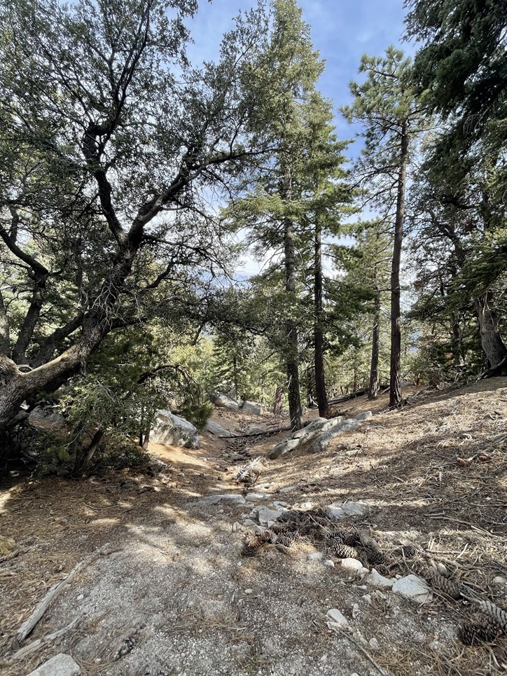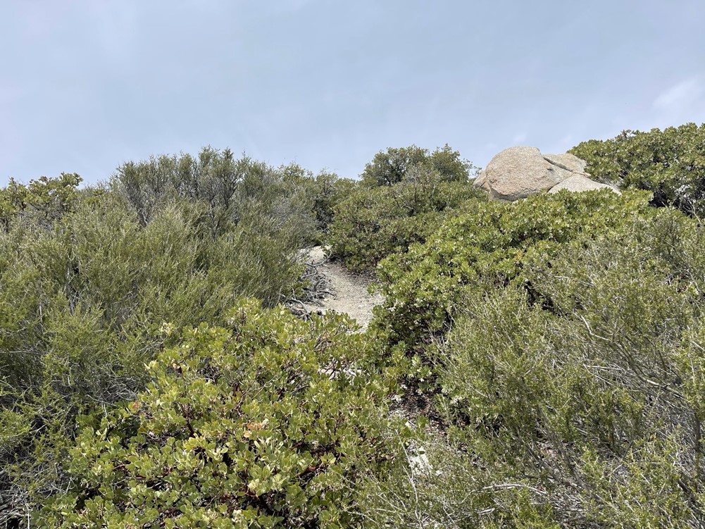 I then started hiking uphill towards the peak. The terrain alternated between forest and chaparral.