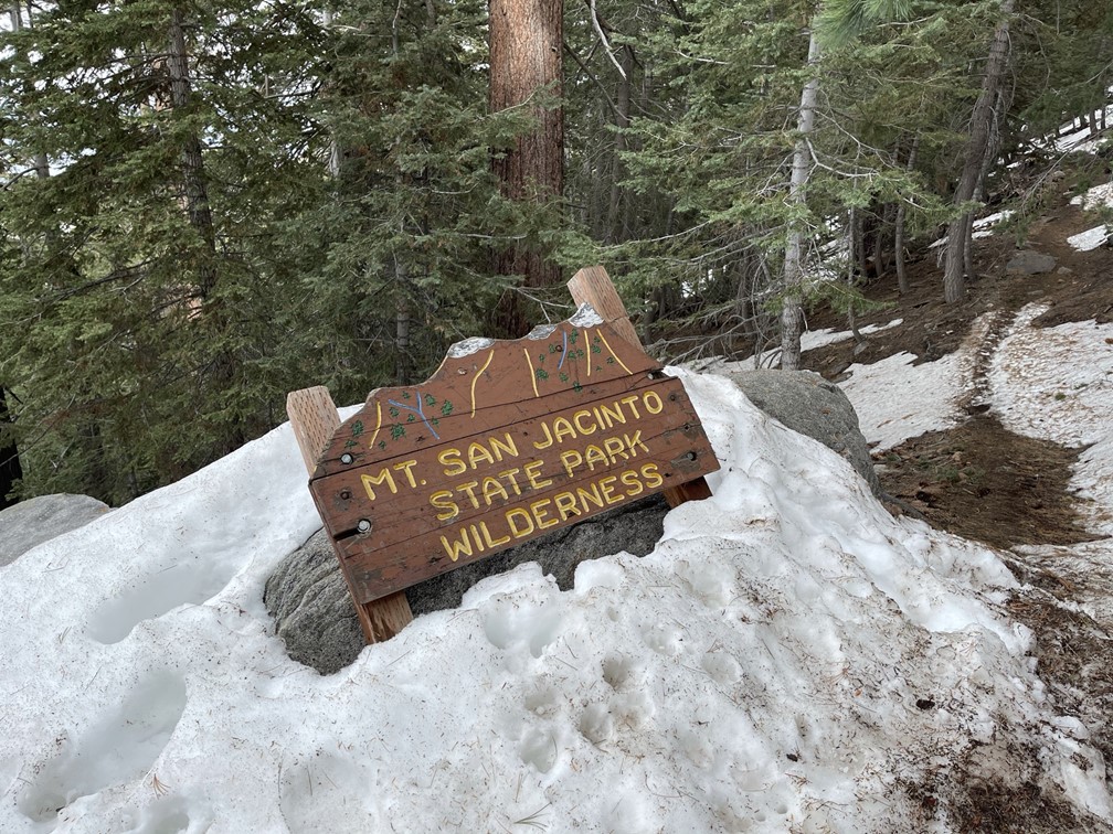 It was cold and windy on top, so I had to bundle up. I signed the register which dated to 2009. The previous entry was from October 22, 2020. I was surprised at how long ago that was, but I did not find any more recent entries. San Jacinto looked incredible from so close. The steep north face still had a lot of snow on it.