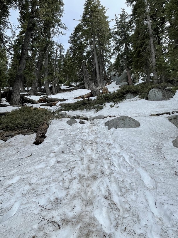 I began heading east on the PCT. Parts of the trail were covered in snow.