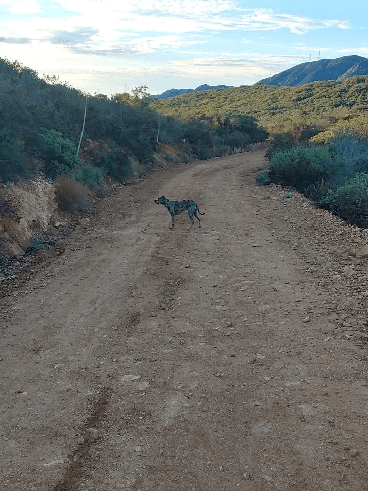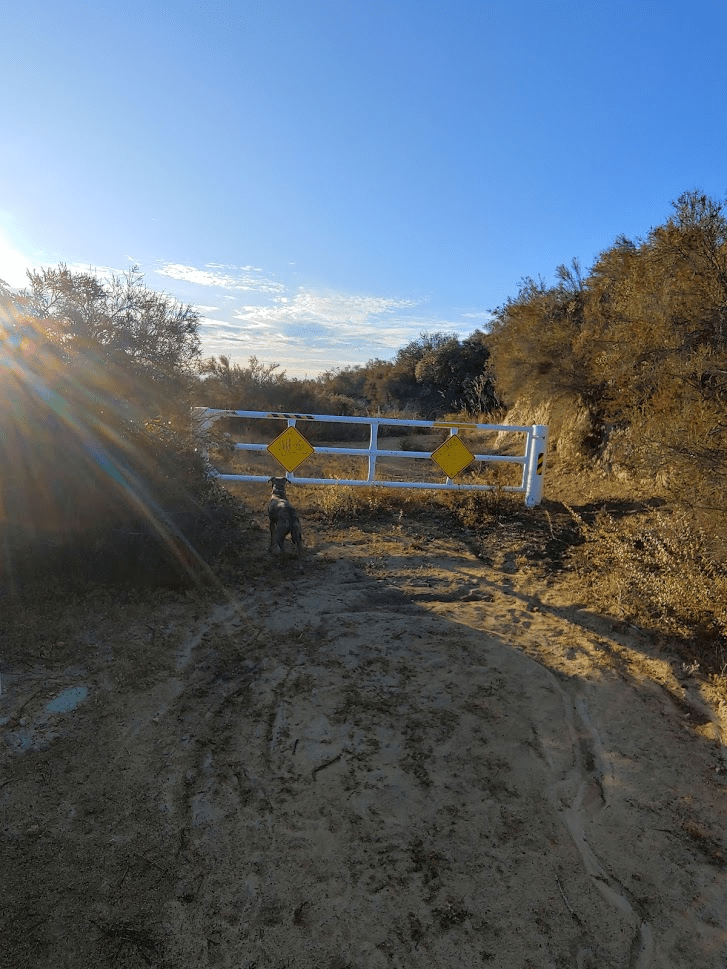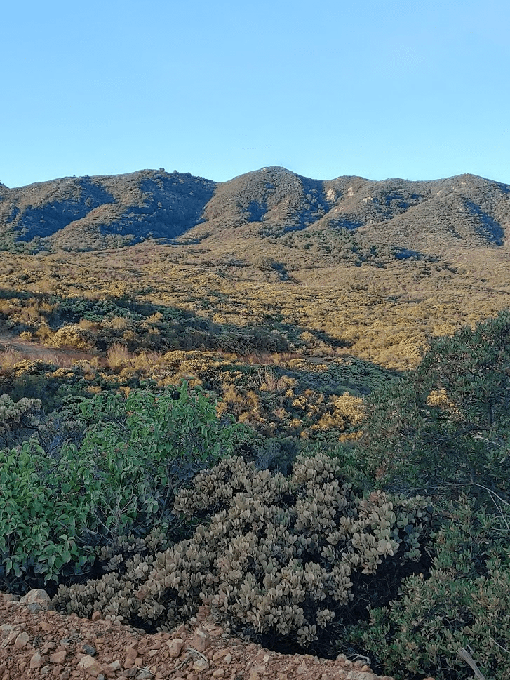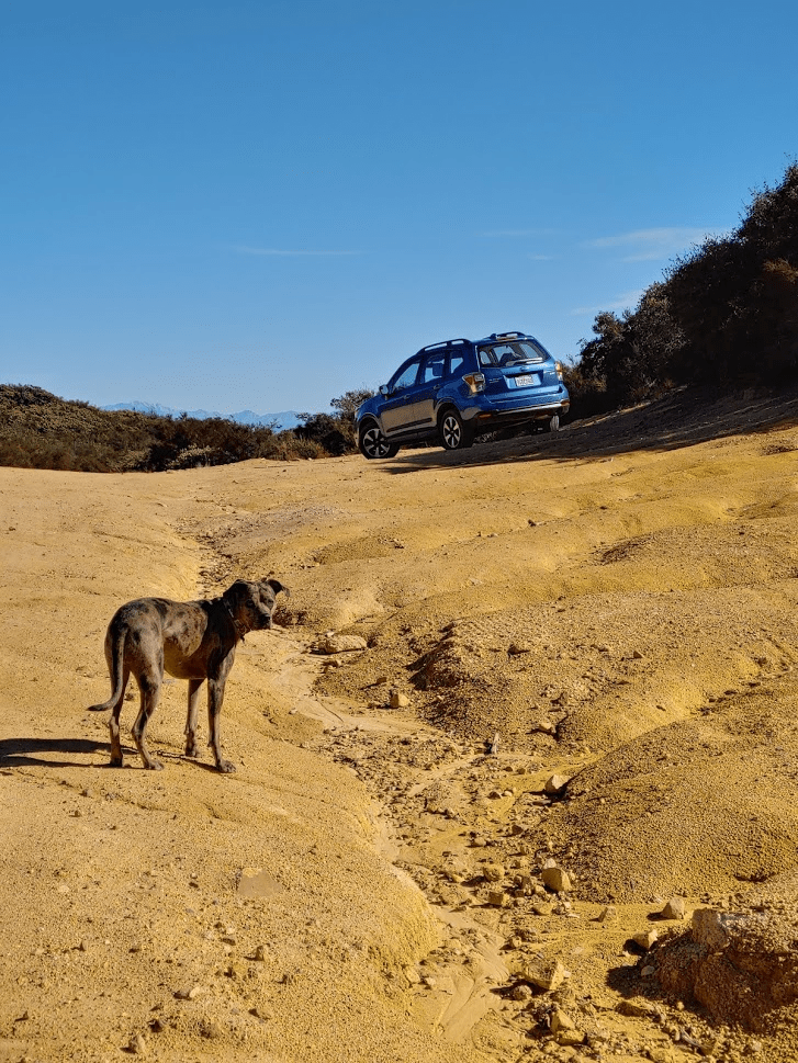 My alarm went off at 4:30am and I quickly got ready and was out the door at 5. Today my main goal would be Margarita Peak, a peak on the southern end of the Santa Ana Mountains just north of Camp Pendleton. This peak is part of the Sierra Club Lower Peaks Committee, a list of 84 peaks in southern California which are under 5000 feet of elevation. I chose this peak today since it is relatively close, and I was hoping to be back in town by 1:00pm to watch the Wisconsin Badgers game. I also brought along my dog Stella, our first adventure together in my new Subaru Forester. Stella, not typically a morning dog, excitedly got out of bed once she realized she was coming with me. I exited I-15 in Wildomar on Clinton Keith Road and continued for a few miles before turning right onto Tenaja Road. It took me about an hour and half total to reach the end of the pavement on Tenaja Road, where I turned left onto Margarita Road. This road is a little rough but probably drivable in just about any car. Nonetheless, I was much more comfortable in my new Forester than I would have been in my old Honda Accord. I parked about 2 miles from the trailhead since I wanted to add a few miles onto my hike. At 6:48am, I was ready to go and began my hike.