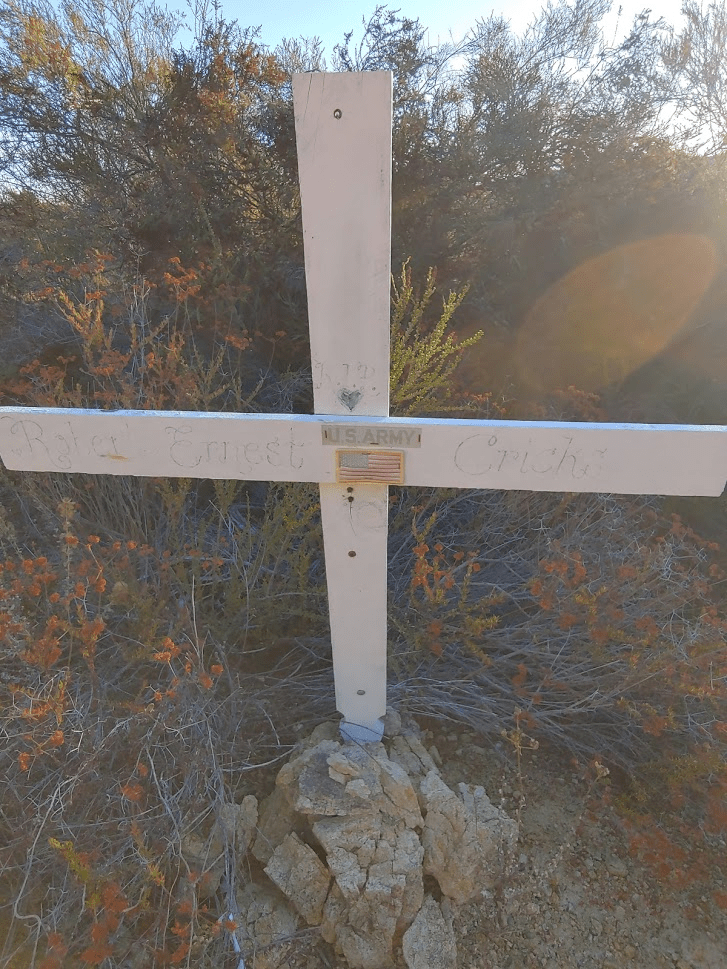 Immediately after passing through the gate, we found 2 crosses sticking out of the ground, one of which had a US Army sticker and an American flag on it.