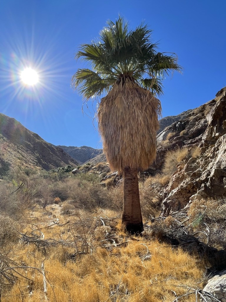 I reached the canyon bottom at 7.7 miles at 1588 feet, which was the lowest point on the hike. There was a lone palm tree.