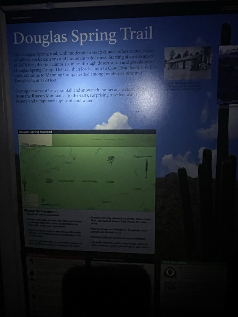 Mica Mountain, located just east of Tucson, is an 8664 foot mountain that is the highpoint of both the Rincon Mountains and Saguaro National Park. There are multiple ways to approach it, but they are all long and/or require a difficult drive to reach the trailhead. I chose to climb it via the easiest drive but the longest hike. The Douglas Spring Trailhead, located in a suburban neighborhood in east Tucson, provides easy, paved access to the northwest corner of the park. Mica Mountain is a 14 mile hike one way from the trailhead on well maintained trails. I had spent the previous night camped at Molino Basin Campground, located on the lower portion of the Mount Lemmon Highway. Shockingly, I was able to find an open campsite when I arrived late Saturday night. I woke up early and made the short drive to the trailhead. I began hiking at 4:52am from 2760 feet above sea level.