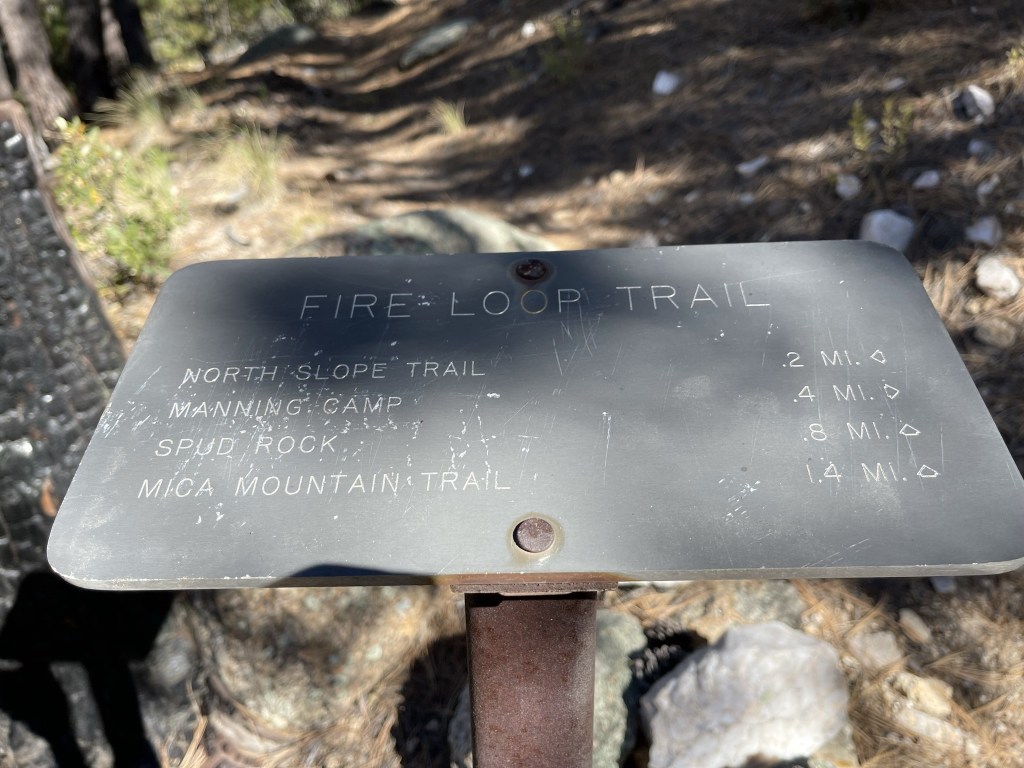 At 12.4 miles I passed a junction with the North Slope Trail but kept going. At 12.5 miles I turned left onto the Fire Loop Trail.
