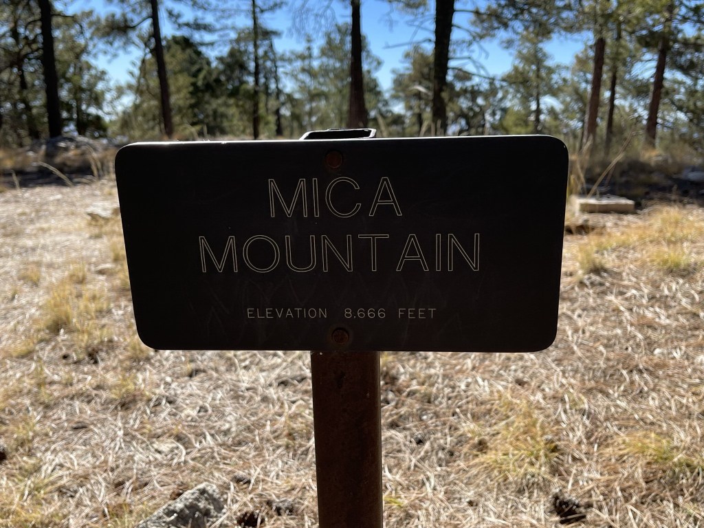 I got passed by 2 separate runners, one heading in each direction. The one going the same way as I was mentioned there might be more runners coming from behind. He mumbled something about some kind of event, but I didn’t fully catch what he was saying. I never did see any more runners though. I got my first good look at Mica Mountain, still many miles away. The prominent rock feature is known as Helens Dome. The actual summit of Mica is further to the left (east).