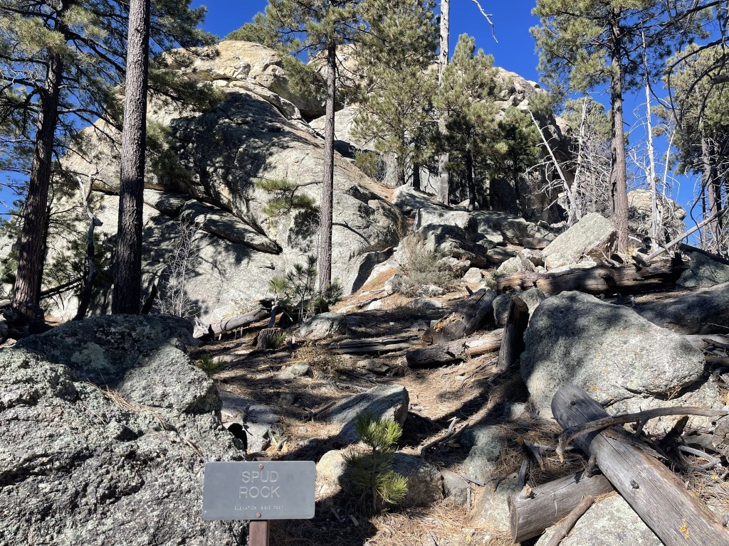 I reached Spud Rock at 11:11am at 14.4 miles! There was no register, but I located 2 markers.