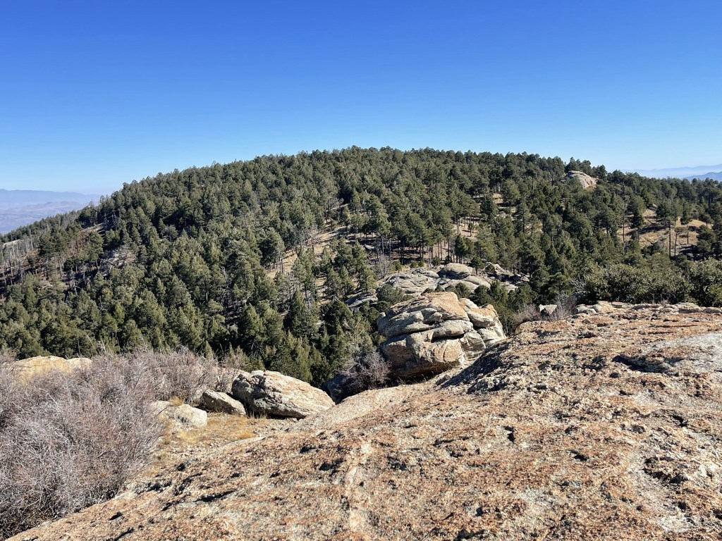 I continued hiking east. I passed Spud Rock at 13.2 miles. Spud Rock (8613 feet) is only 50 feet lower than Mica Mountain, but since it is a rock outcropping with no trees on it, the views are far superior. I planned to visit Spud Rock on my way back.