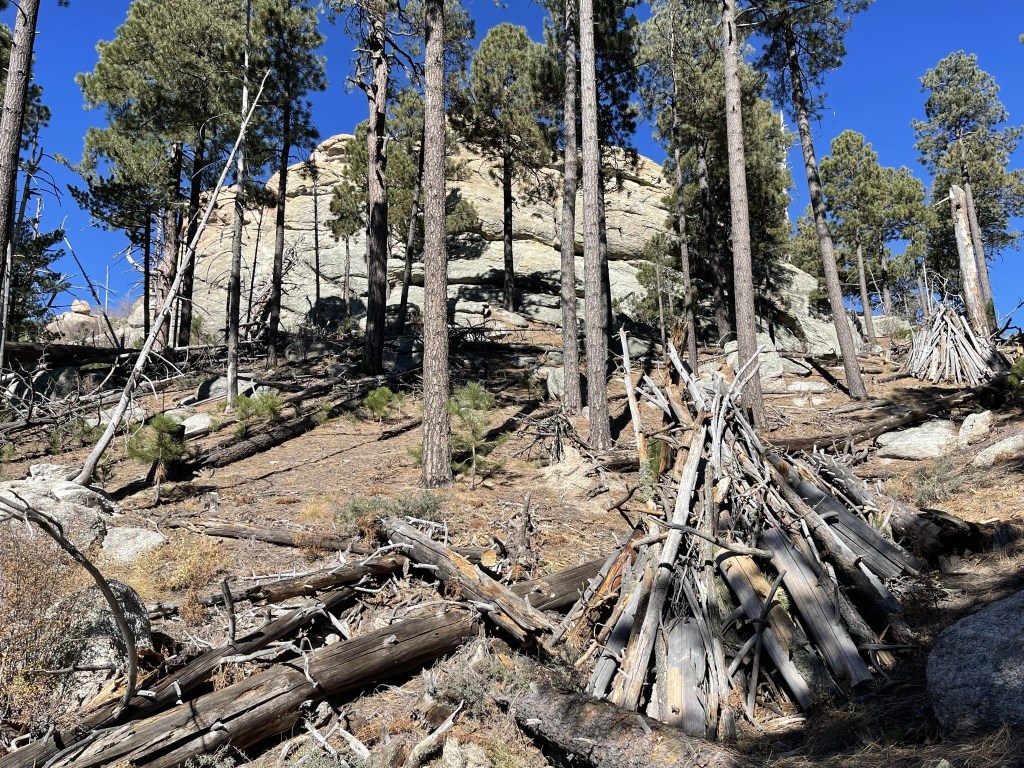 I reached the trail again at 14.5 miles. I noticed some log piles near Spud Rock. I think they are stacked up like that for fire prevention.