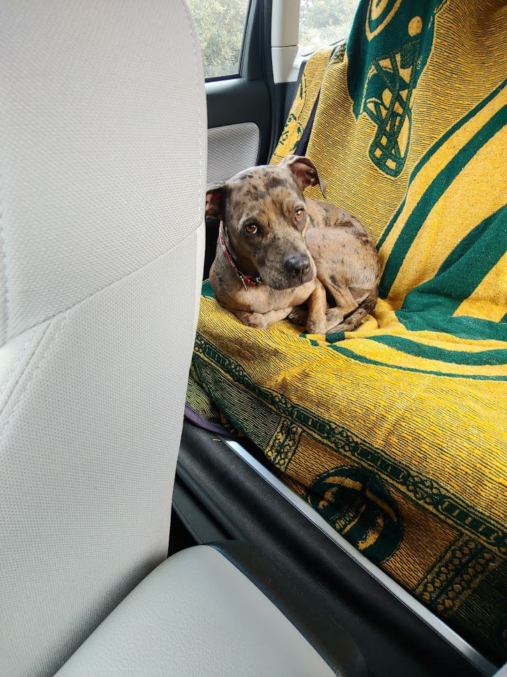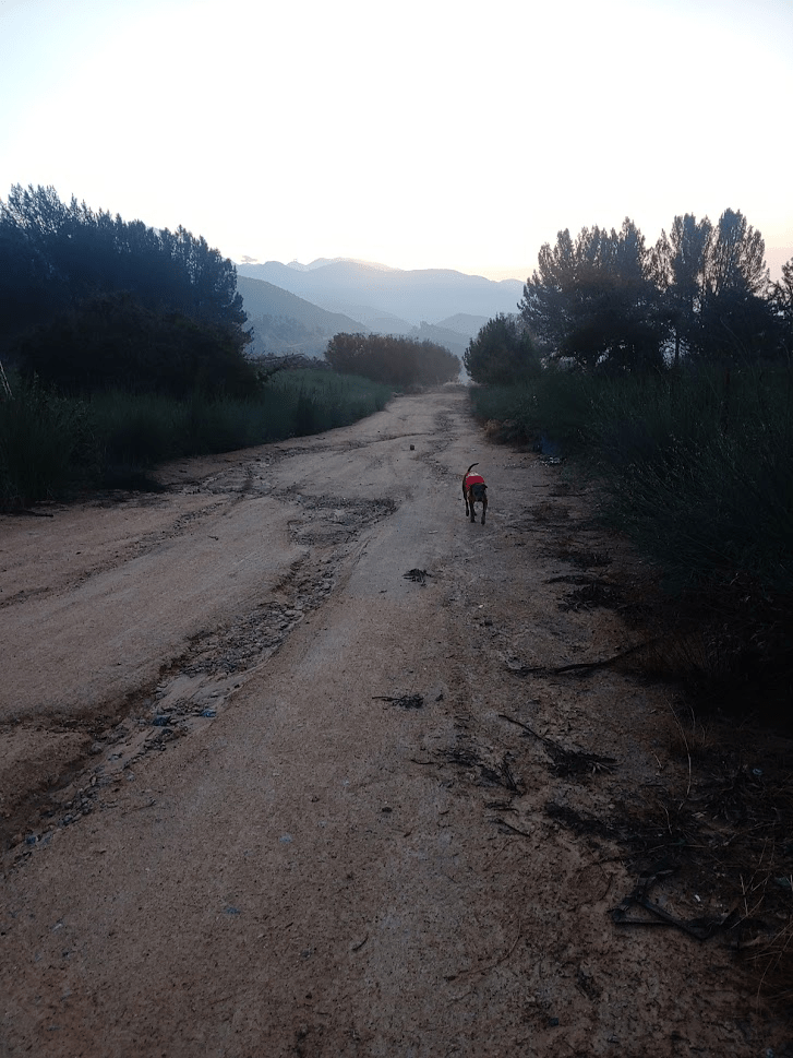 It was a very cold morning, so I even put Stella’s sweater on as we began. Harrison Mountain was already visible at the start of the hike.