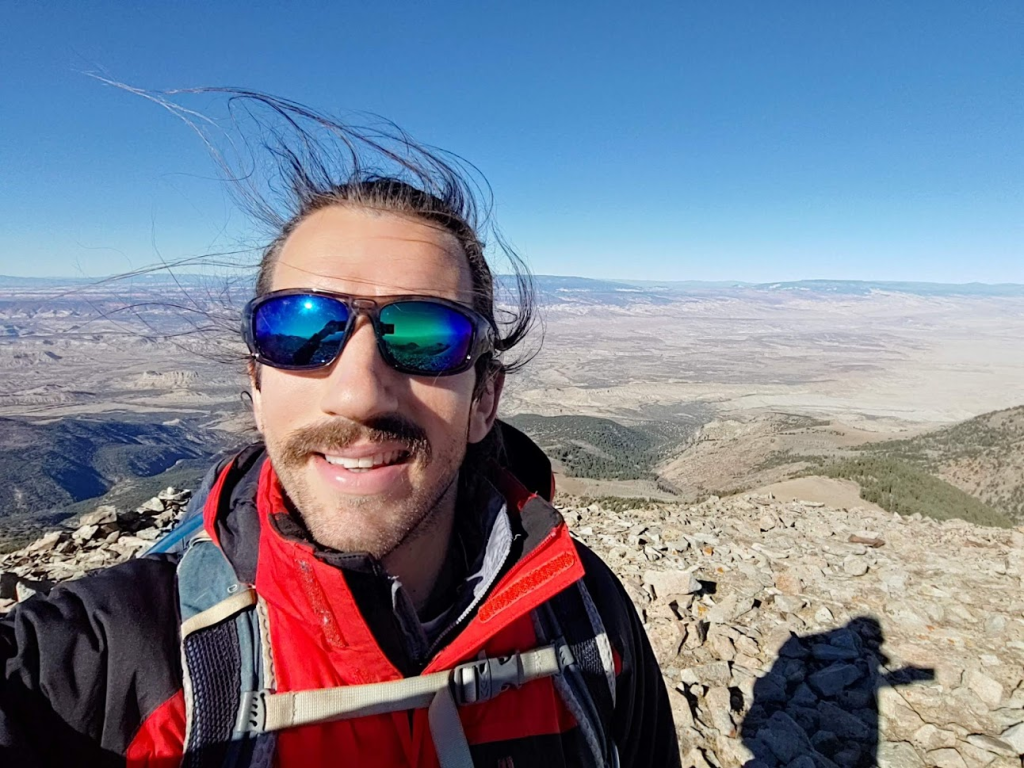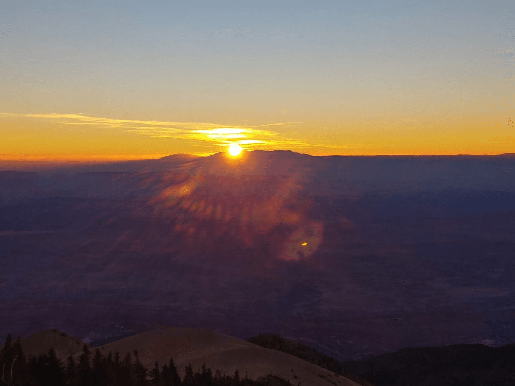 I believe the peak that the sun is behind in the photo above is Abajo Peak, a 4k prominence peak in southeastern Utah. The sun rose at 7:31, just 4 minutes after I summitted!