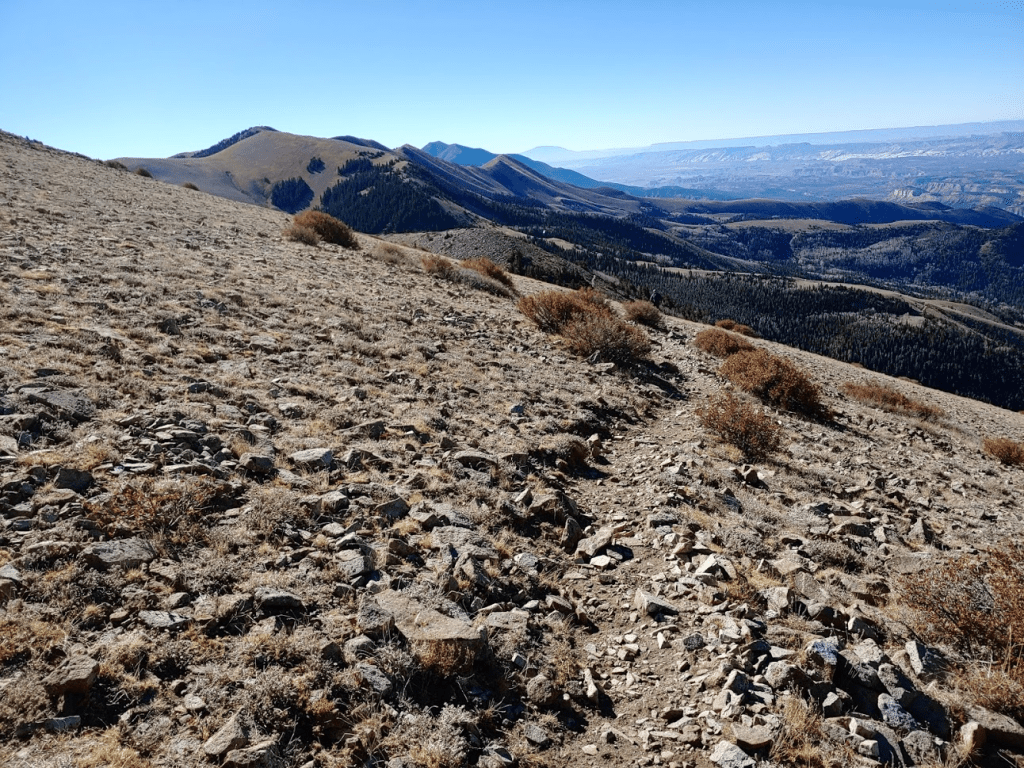 Just after seeing the buck I saw a huge group of deer close by. I was really keeping my eyes peeled for elk or bison, both of which roam these mountains. Apparently, the bison were transplanted from Yellowstone National Park years ago and now are 1 of only 3 free roaming herds in the United States. Unfortunately, I never saw any. After the deer, I continued hiking north towards the summit.