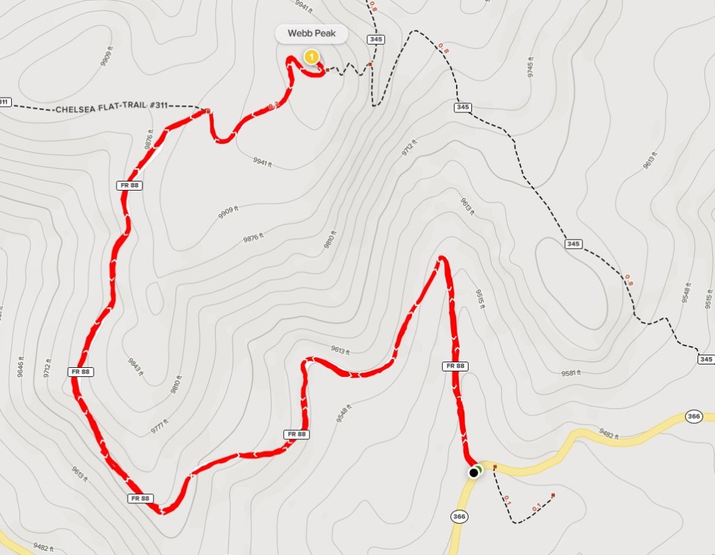 Similar to Chiricahua the day before, the views were disappointing for a peak with so much prominence. The summit was too broad and flat to see very far, plus the trees blocked the view anyway.