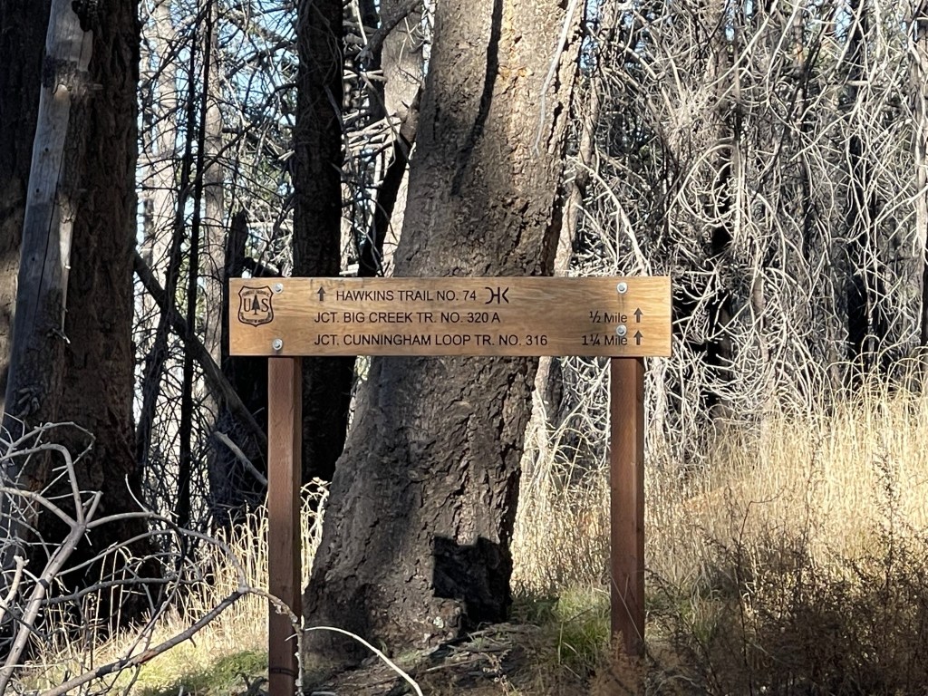 At 1.4 miles I reached a junction with the Hawkins Trail. I continued on the road.