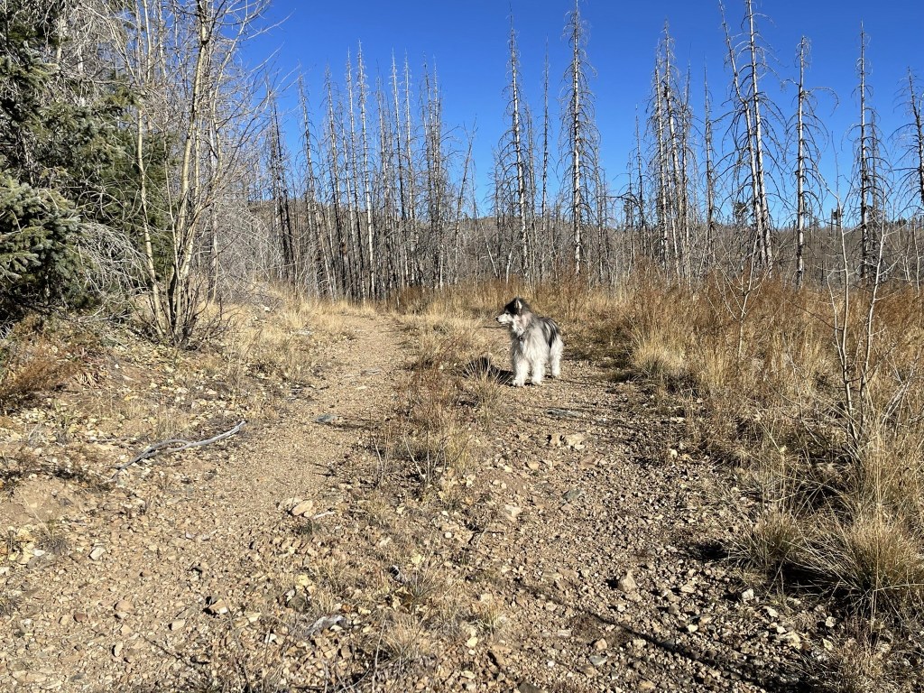 As I kept hiking, I noticed the dog had changed direction and was now following me. I wondered if it was going to catch up with me and hike with me to the peak. However, it eventually disappeared from sight, and I didn’t see it again.
