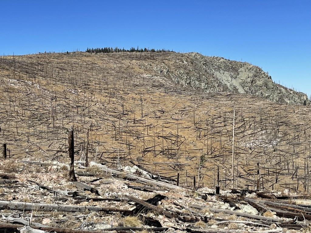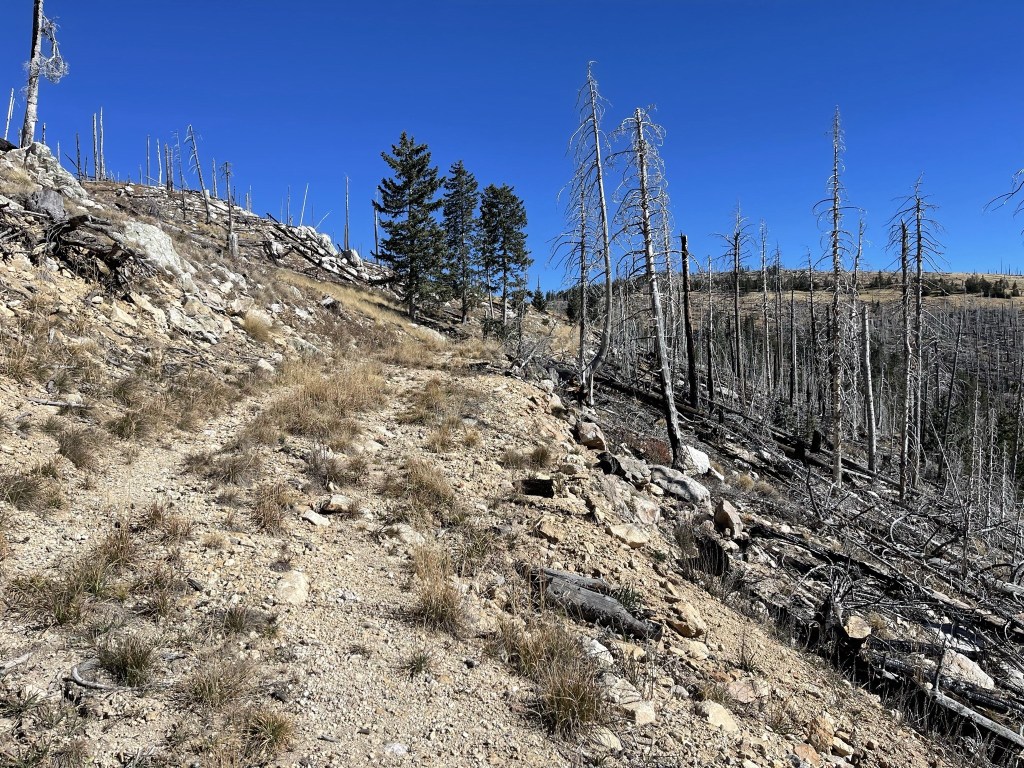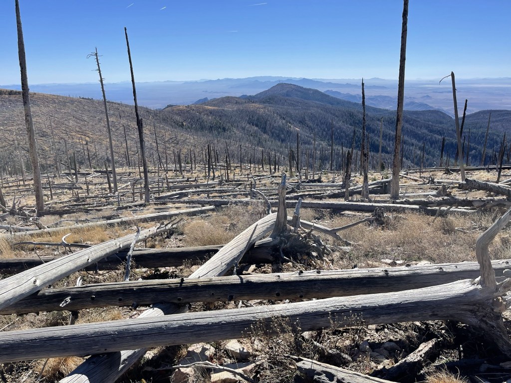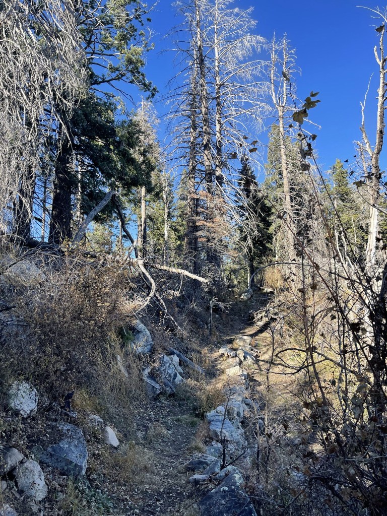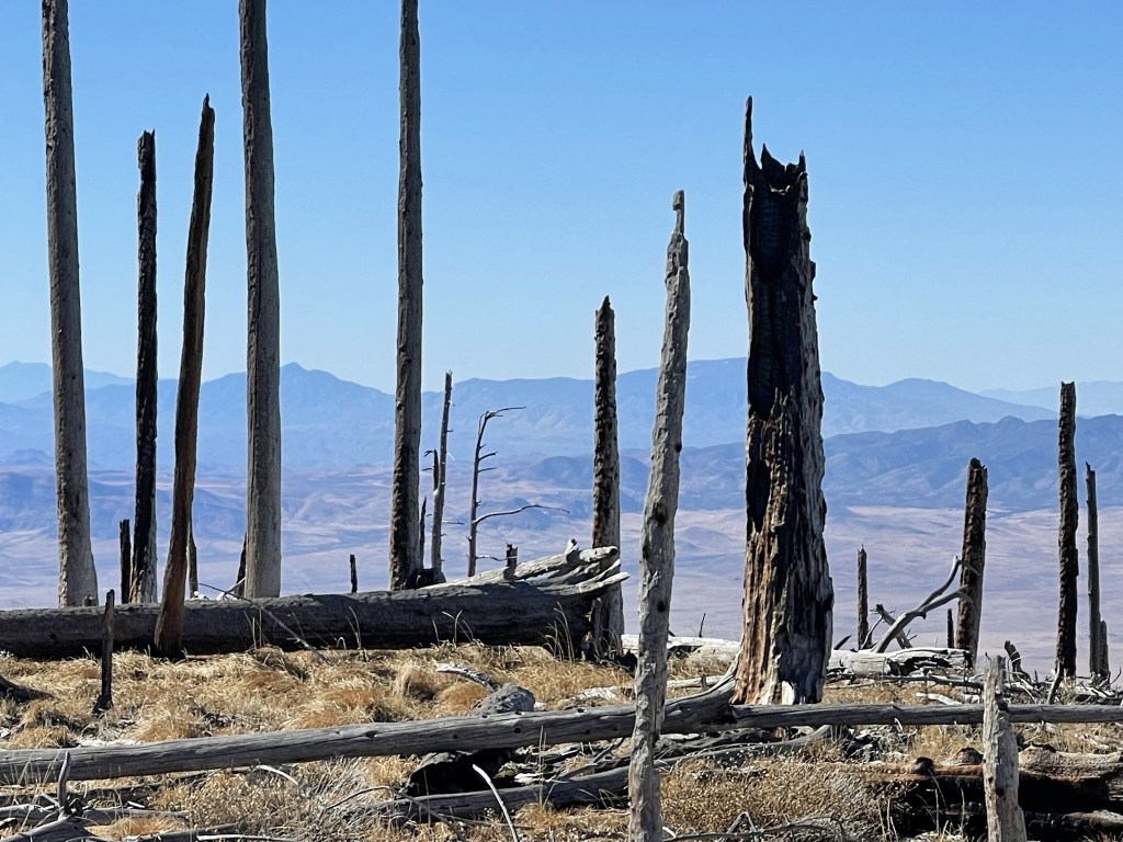 I continued north as I hiked through a tree graveyard. This entire area had burned extensively in a recent fire.